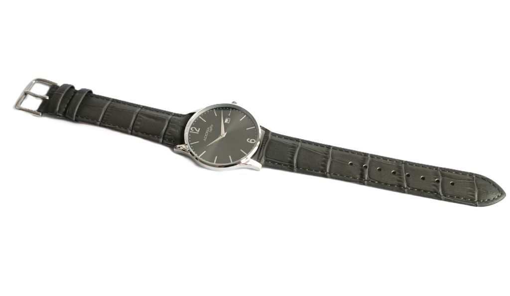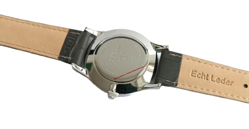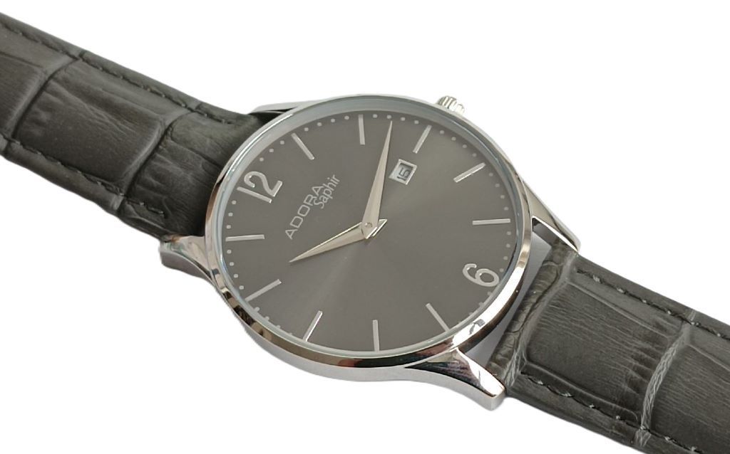 Adora Adora Saphir Herrenuhr Ø 40mm Edelstahl graues Lederband Analog Quarz