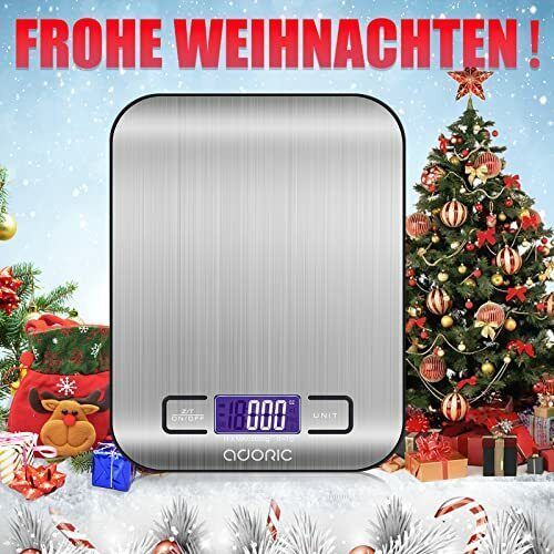 ADORIC Digitalwaage Elektronisch Kéchenwaage LCD Display 5 kg Gewicht Silber