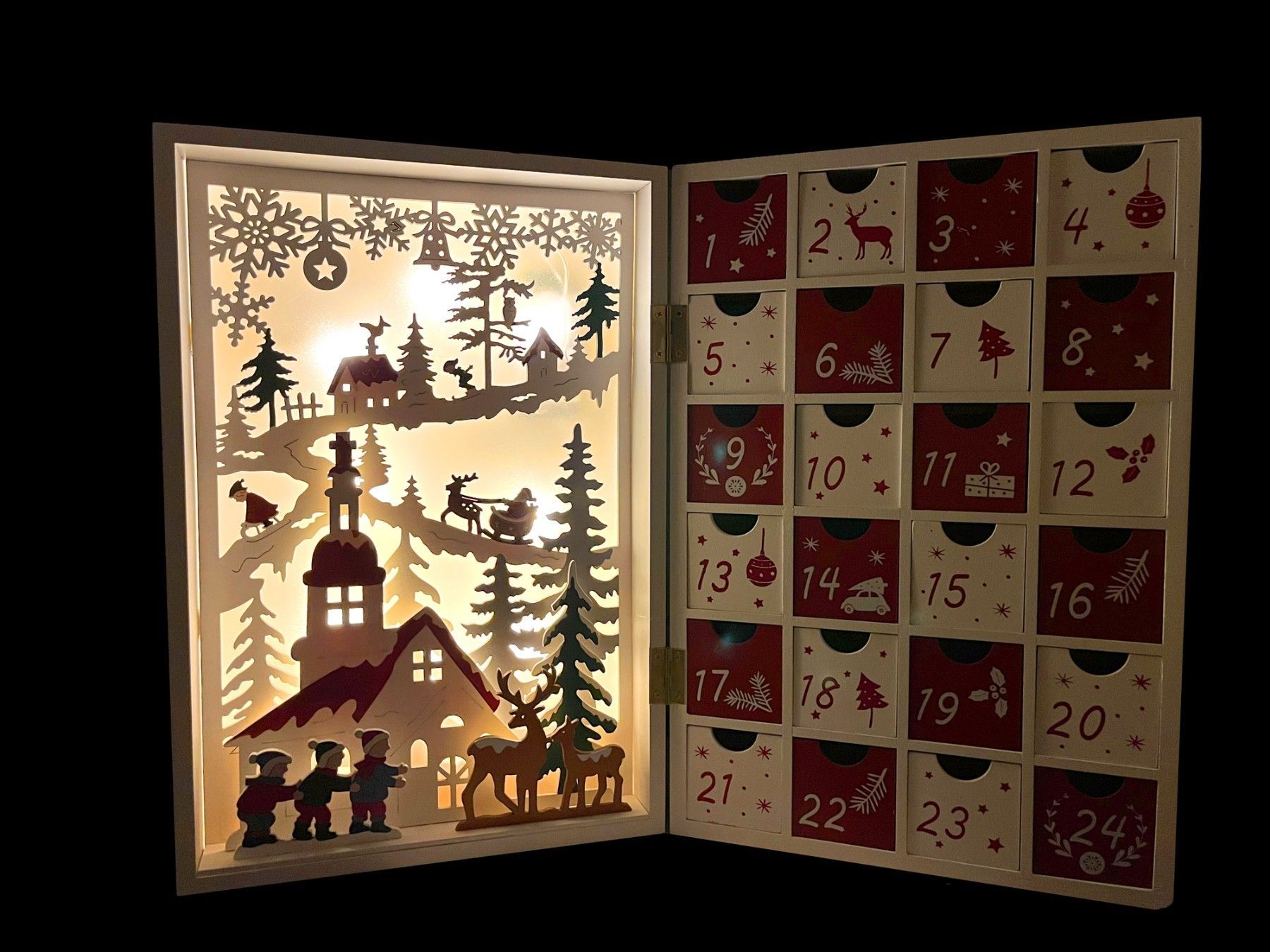 Adventskalender 2025 Holz zum befüllen DIY bestücken Damen Kinder 35cm Frauen BUNT