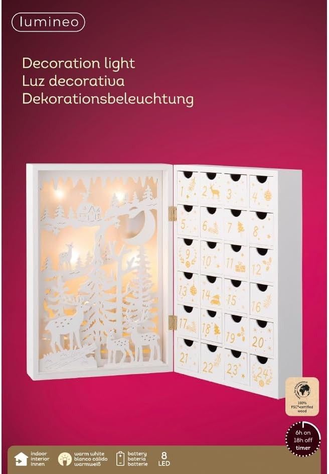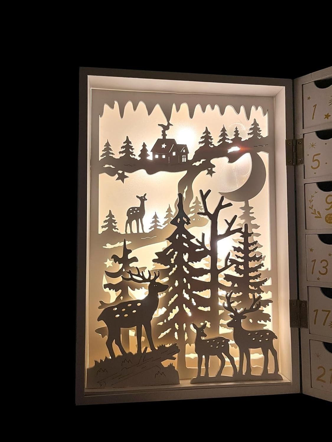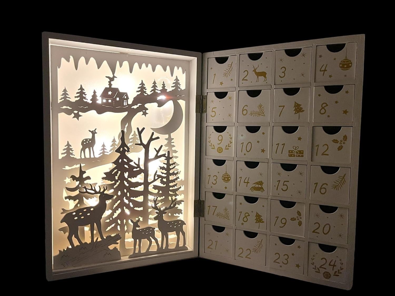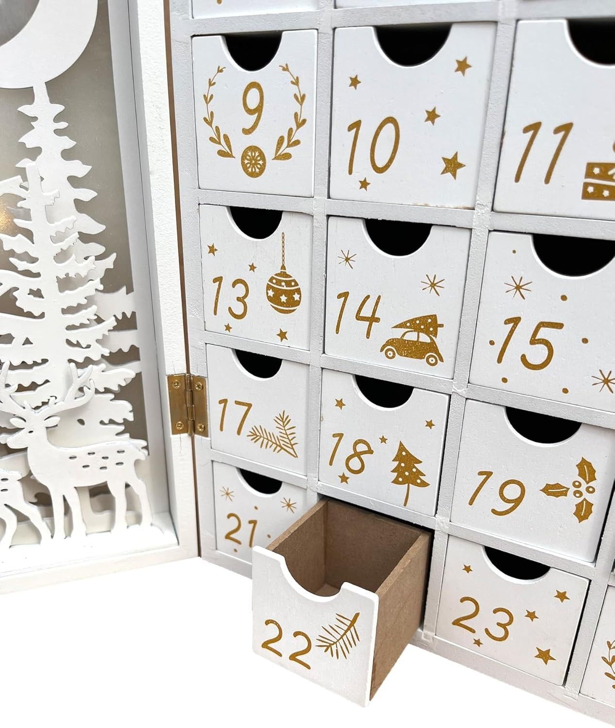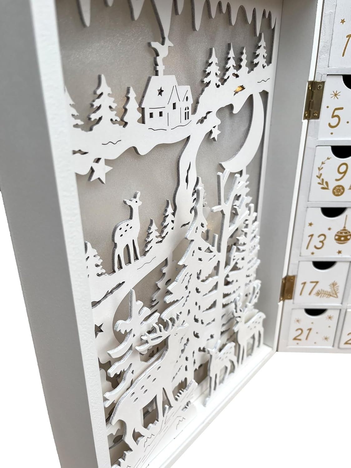 Adventskalender 2025 Holz zum befüllen DIY bestücken Damen Kinder 35cm weiss Frauen