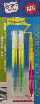 • Paper scrip 2 Stück Duo Textmarker Stifte Set gelb mit blau und grün Flüssigtinte