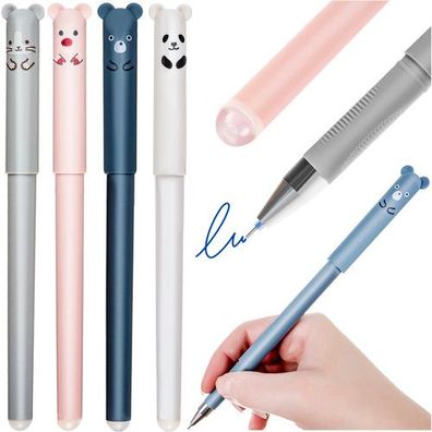 • Radierbare Stifte Set 4 Stück blau Kinder Schulstifte Tiere löschbar 0,35 mm