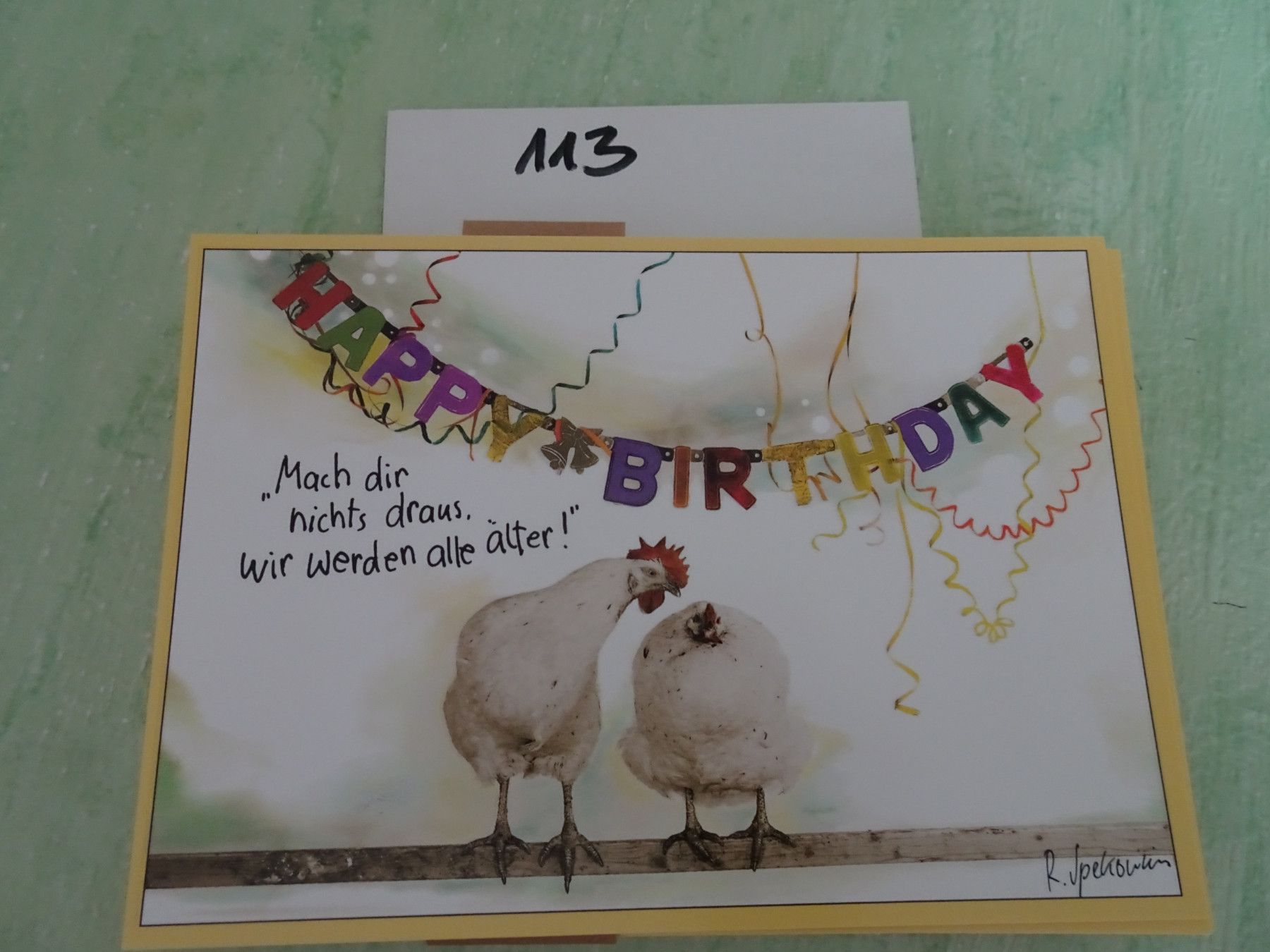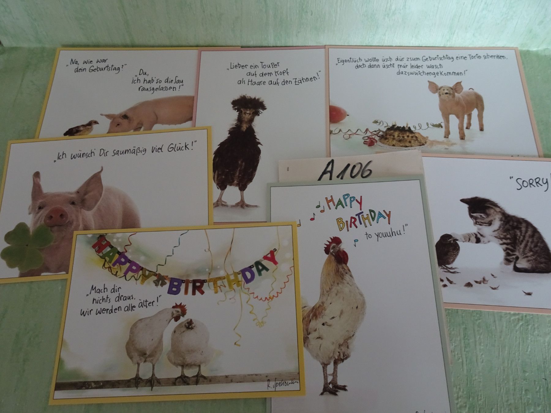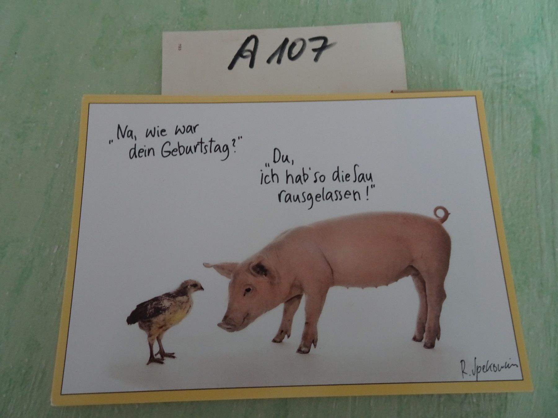 ältere Postkarten AK Renate Spekowius Art & Animals Happy Birthday Humor Schwein Huhn
