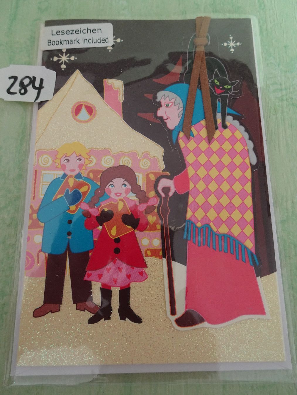 ältere Susy Card Grußkarte & Lesezeichen & Kuvert Hänsel & Gretel / Hexe RAR