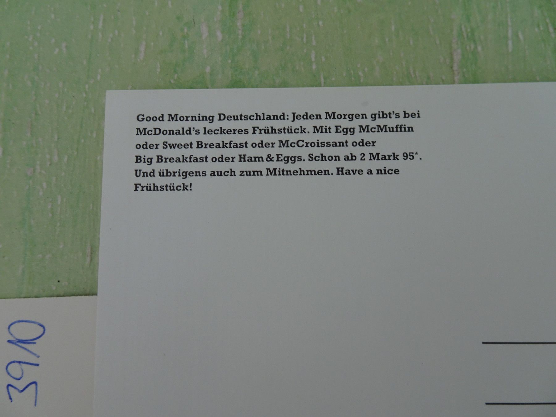 ältere WerbePostkarte AK Reklame McDonald´s McMorning frühstücken Türanhänger