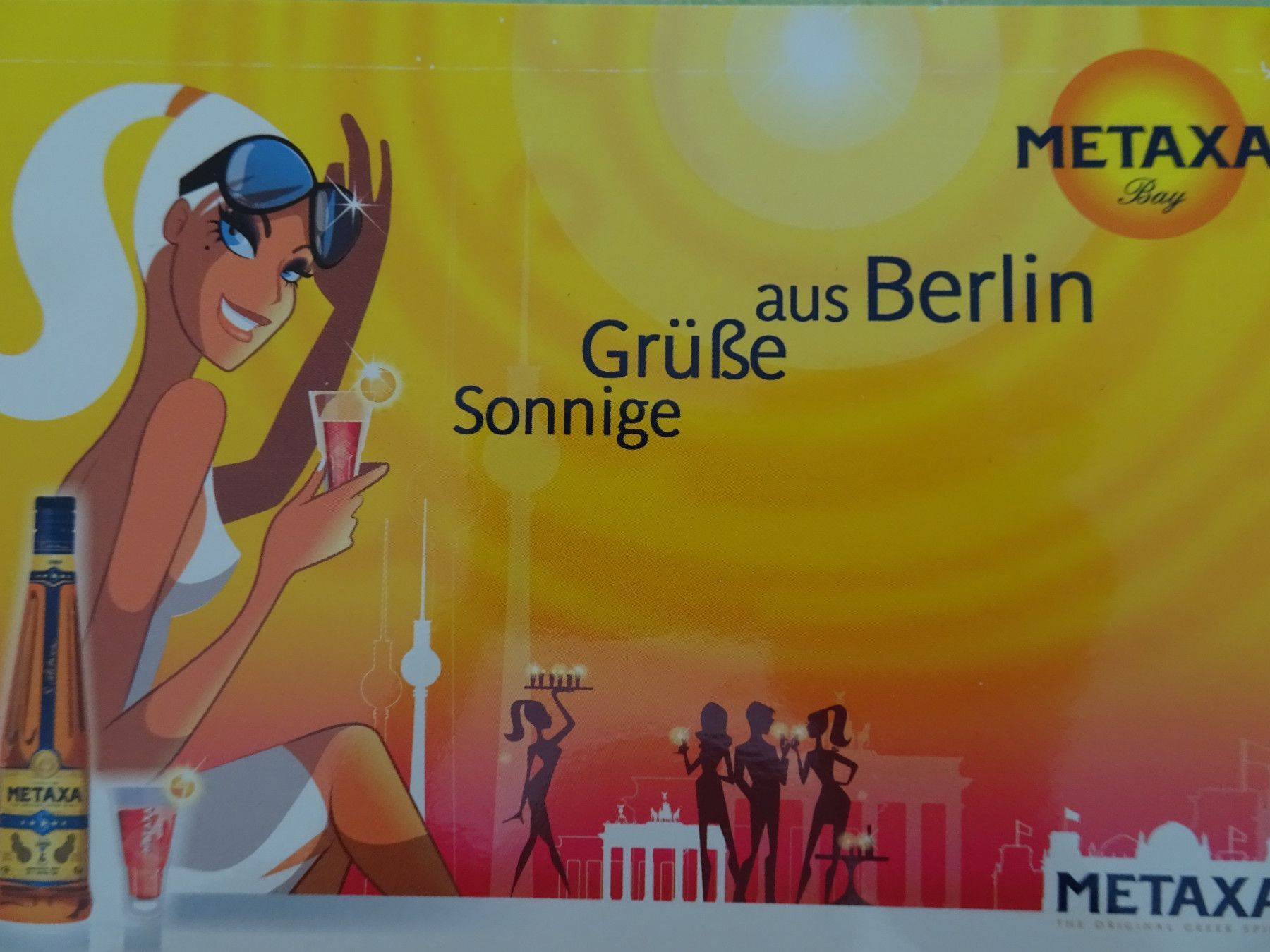 ältere WerbePostkarten AK Reklame Metaxa Bay Restaurant Sonnige Grüße aus Berlin