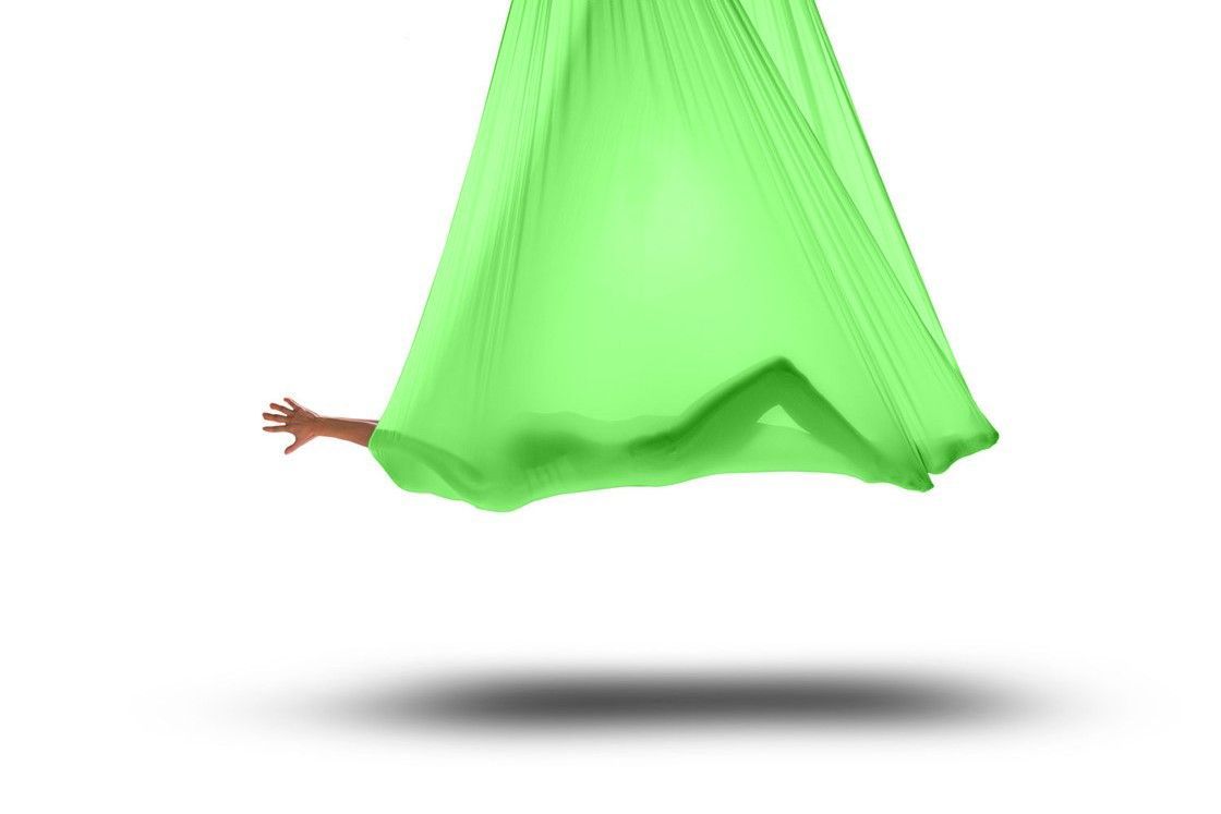 Trendsport, Fitness und Yogazubehör - Aerial Yoga Tuch in neongrün Dieses Tuch ist speziell für das Yoga in der Luft - Aerial Yoga - entwickelt worden. Durch seine Breite ist besonders dafür geeignet und lässt unzählige Figurvariationen zu. Üblicherweise wird das Tuch wie abgebildet aufgehängt, soda