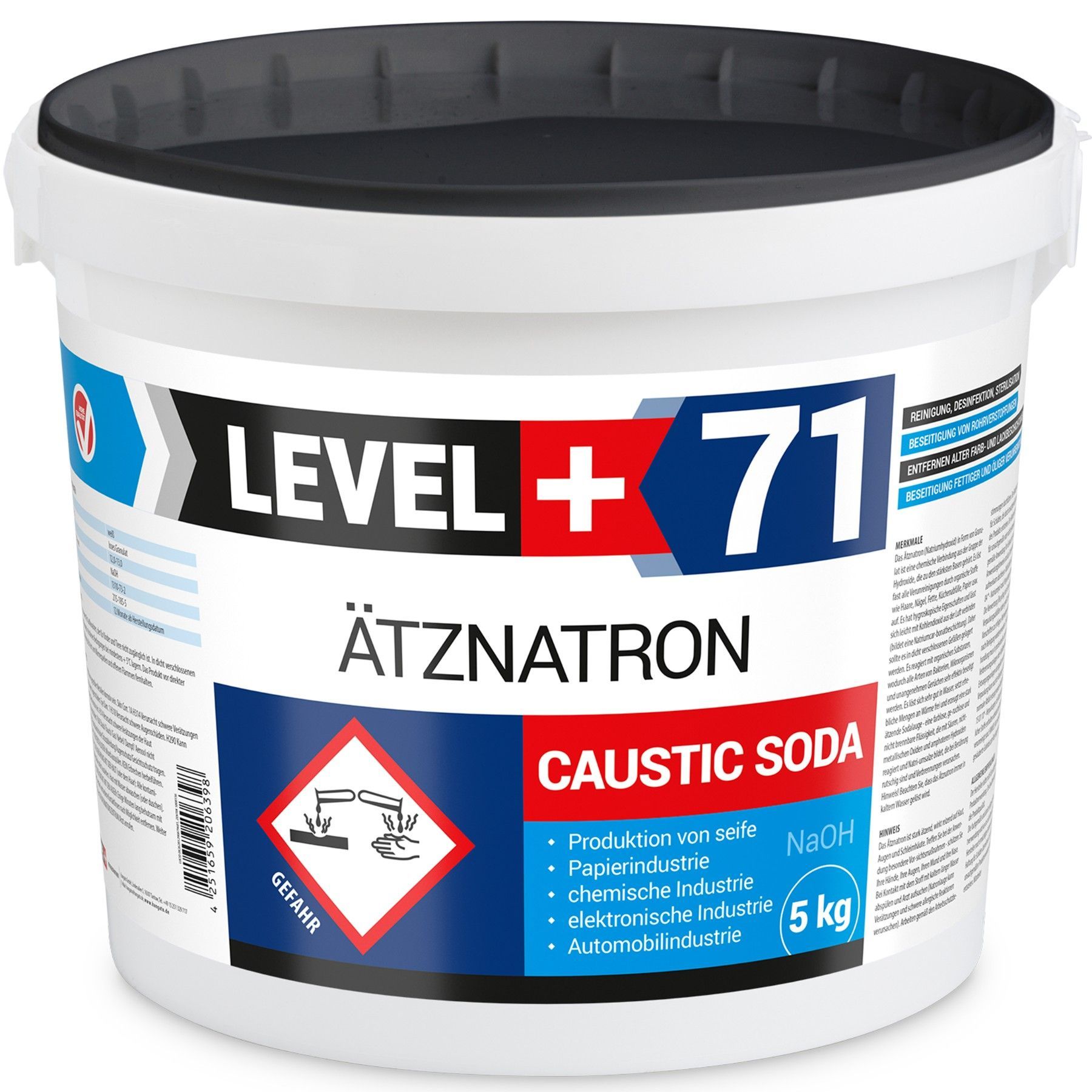 Ätznatron Eimer 1x5kg Natriumhydroxid Kaustisches Soda NaOH LEVEL PLUS L+71