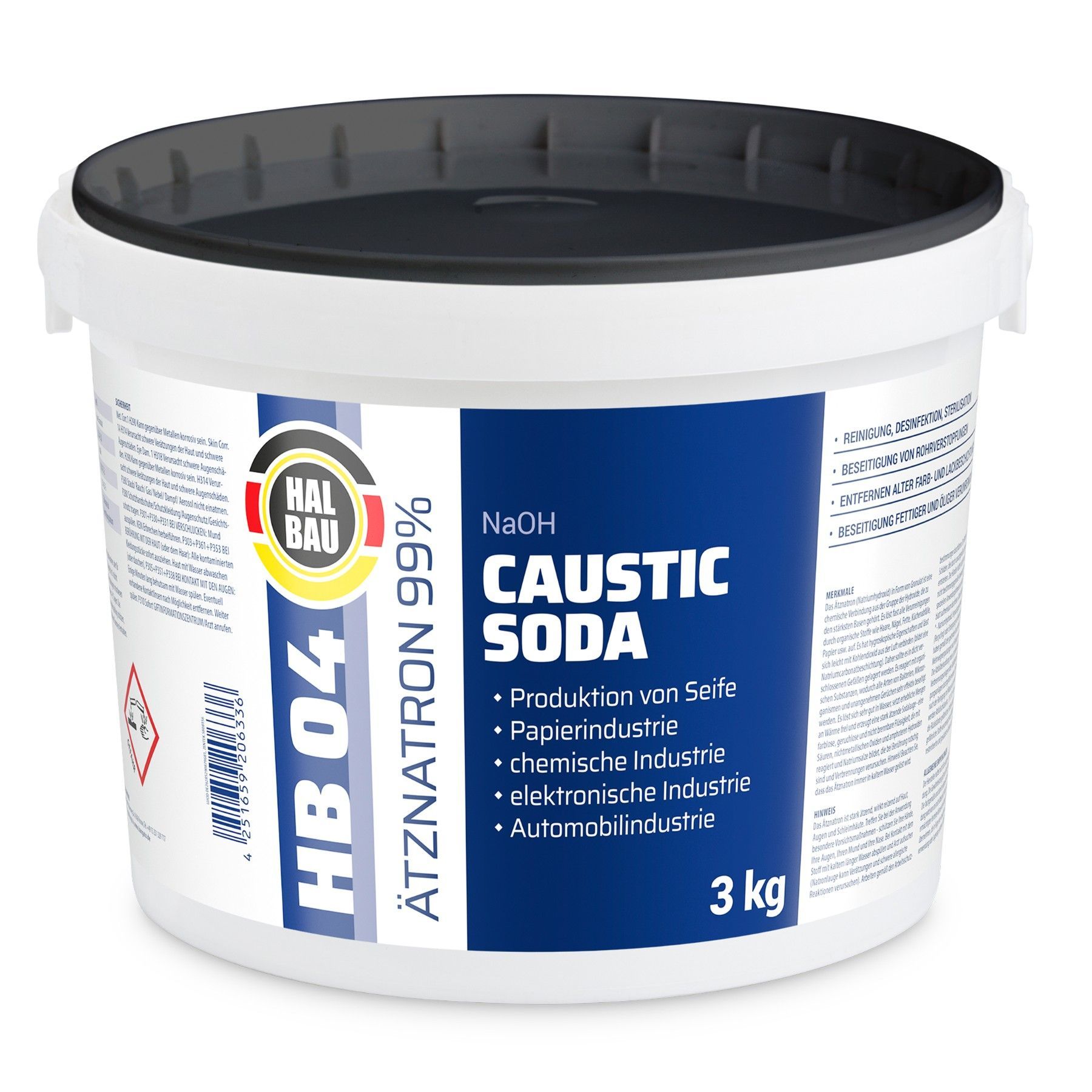 Ätznatron Kaustisches Soda NaOH Natriumhydroxid Eimer 1x3kg HALBAU HB04