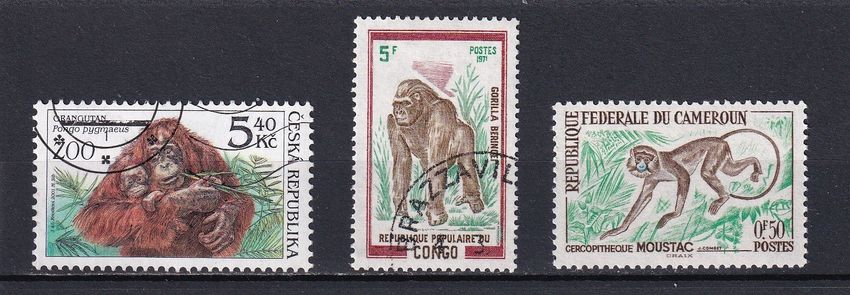 Affen: Tschech. Republik, Kongo, Kamerun, 3 Briefm