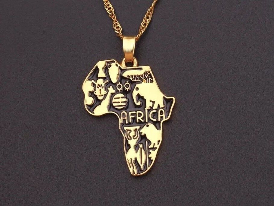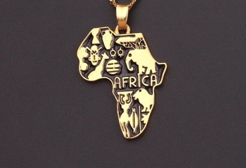Wunderschöne Afrika Souvenier Landkarten Kette mit Afrikas Tieren oder nur Anhänger Material vergoldet Das ideale Geschenk oder einfach nur zum selber tragen. Die Ketten können jedoch unterschiedlich sein, wenn sie damit nicht einverstanden sollten sie die Kette nicht kaufen!!!