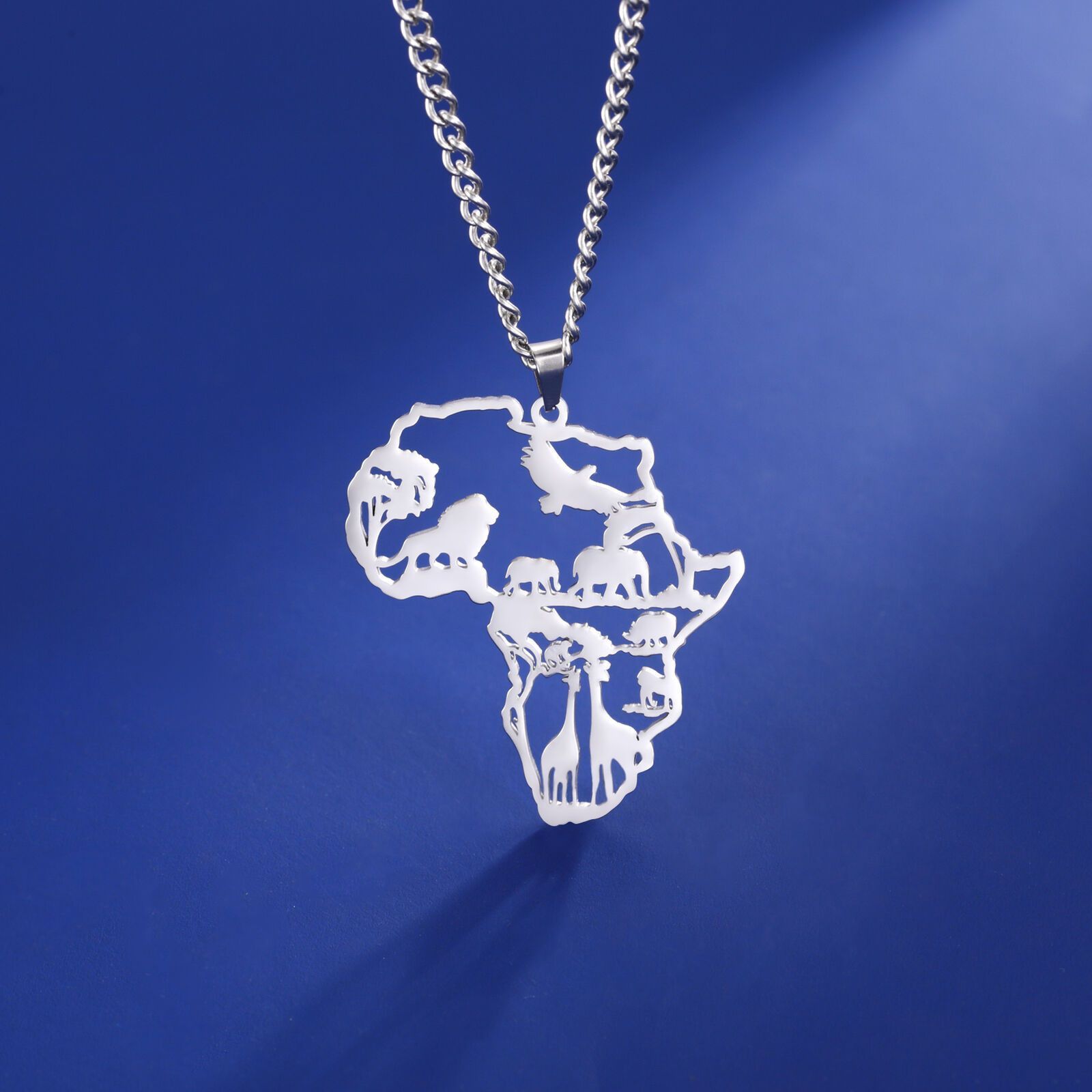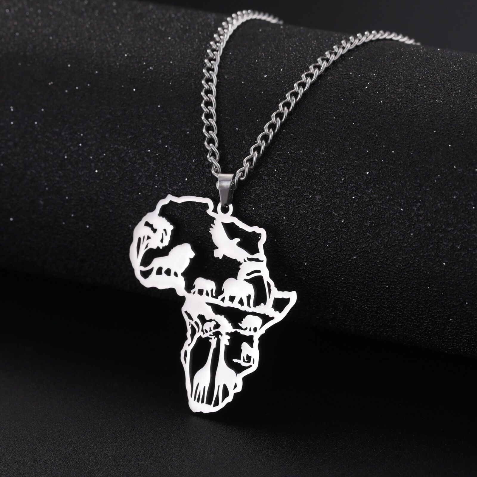 Afrika Tier Kette/ Anhänger, Afrika Landkarte, Afrikas Tiere Souvenier (AK2906245)