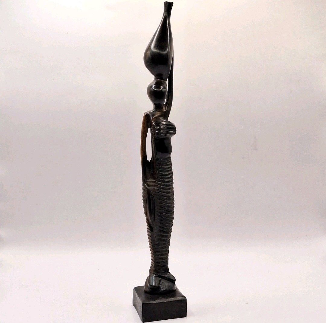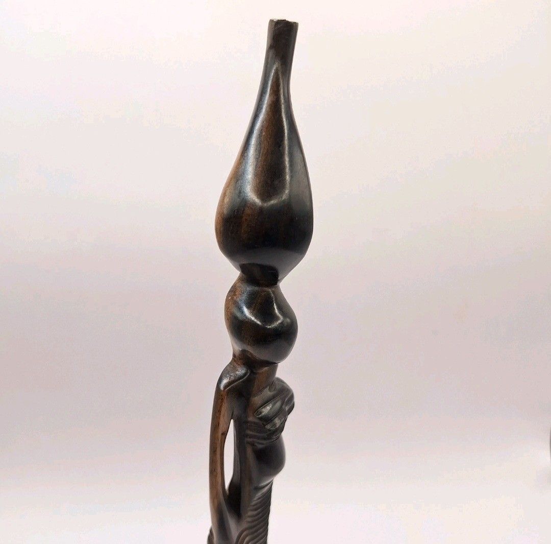 Afrikanische Figur Frau Holzskulptur handgeschnitzt Deko Kunst Afrika Unikat 30cm Diese kunstvoll gearbeitete afrikanische Holzfigur ist ein außergewöhnliches Stück traditioneller Handwerkskunst. Die Skulptur stellt eine afrikanische Frau dar, die anmutig eine Wasseramphore auf dem Kopf trägt – ein