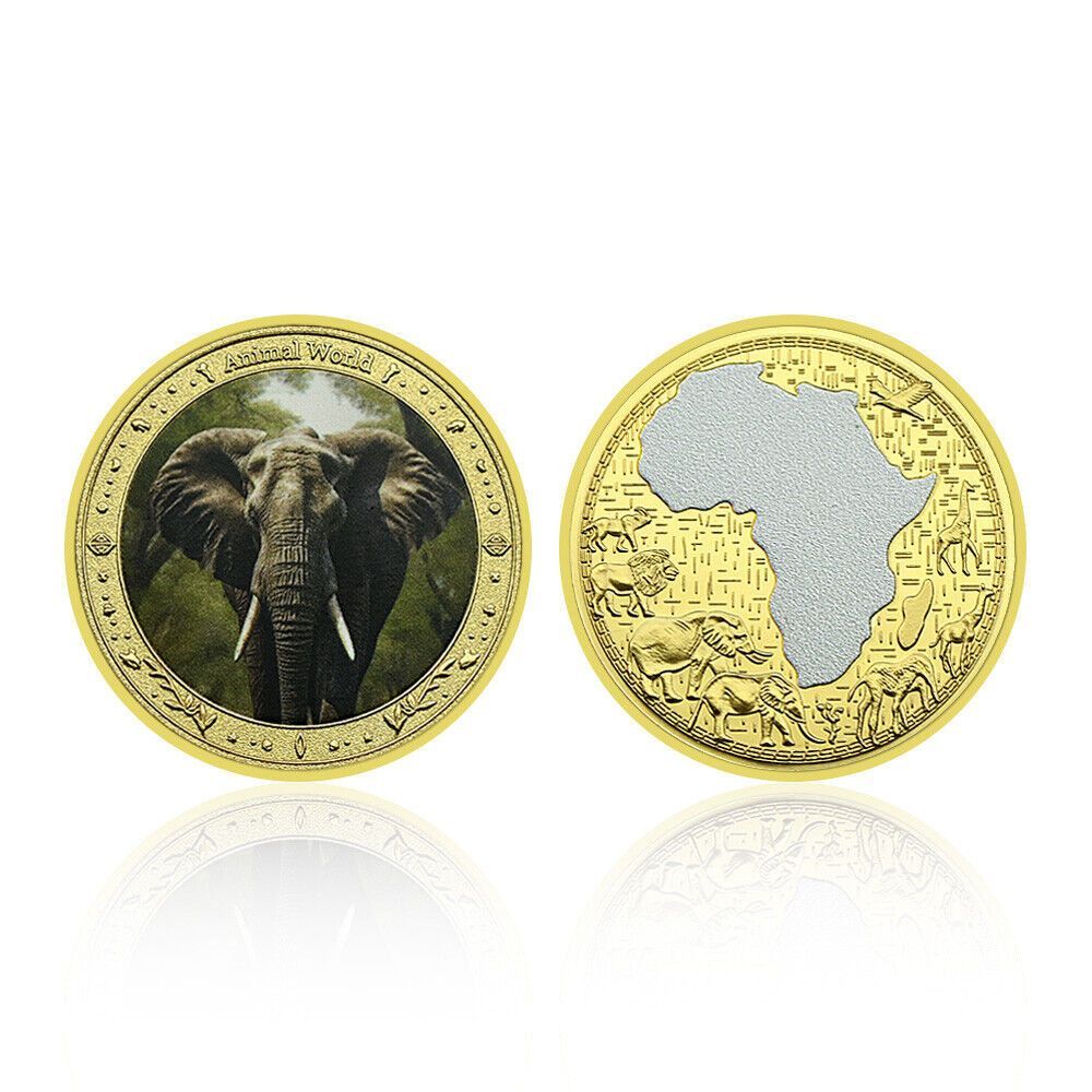 Afrikas Tiere mit Landkarte Medaille Elefant vergoldet (AT1007246)