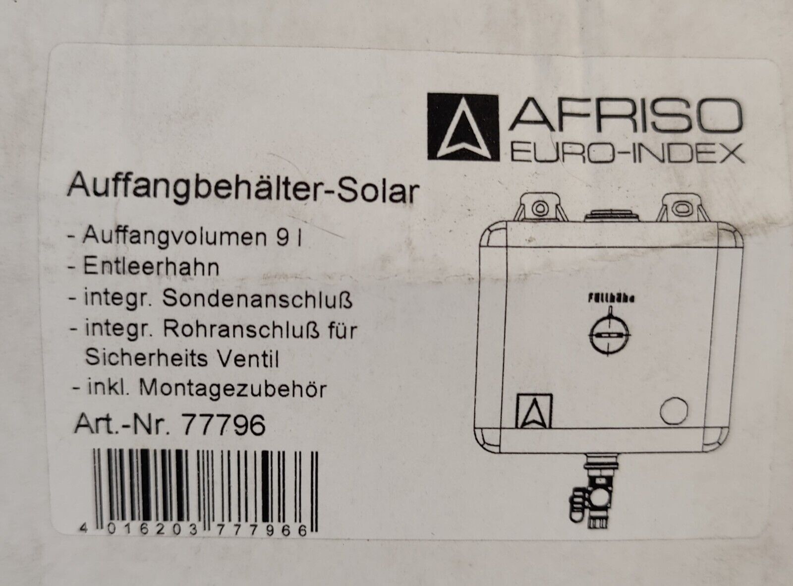 Wir bieten an: Afriso Auffangbehälter 9l zum Anschluss an Solarsicherheitsventil mit Hahn 77796 Artikel-Nr.: 77796 Maße: Länge 145 mm Breite 300 mm Höhe 390 mm Farbe: weiß Modell: Euro-Index Material: Kunststoff Inhalt: 9 Liter Temperaturbeständigkeit: 0°C Euro 95°C Beschreibung: Afriso Auffangbehäl... Mehr