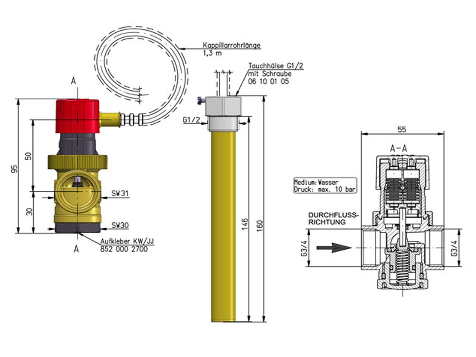 Afriso Afriso Thermische Ablaufsicherung 3/4" Zoll Kapillarrohr 1,3 m Holz Kohle Kessel