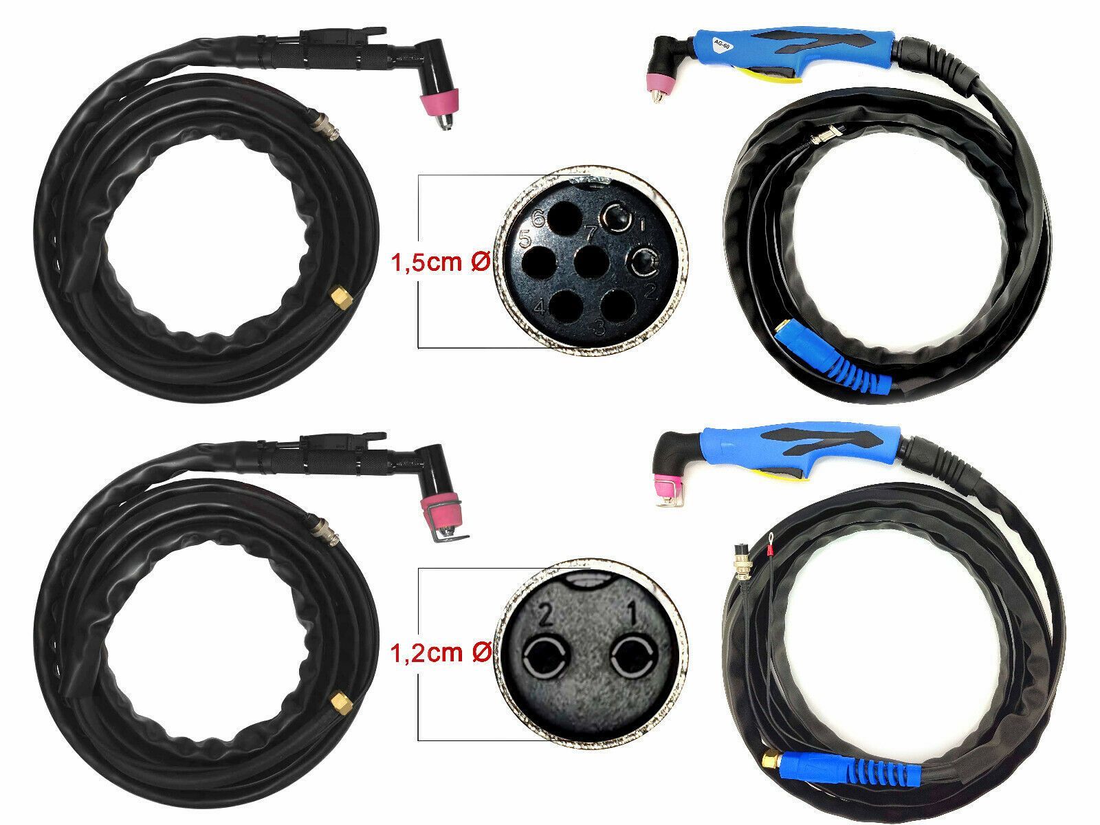 AG-60 Plasmaschneider 6-Meter lang 60A 6 Meter lang Stecker zur Auswahl 2- oder 7-polig Länge: 6 m Max. 60 A inkl. 1x Keramikkappe, 1x Tip-Schneiddüse 1x Eleektrode je nach Auswahl mit Abstandshalter Stecker 2-polig mit einem Durchmesser von 1,2 cm Stecker 7-polig mit einem Durchmesser von 1,5 cm (