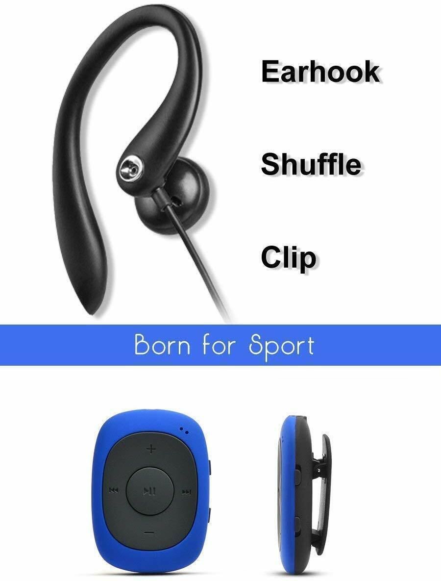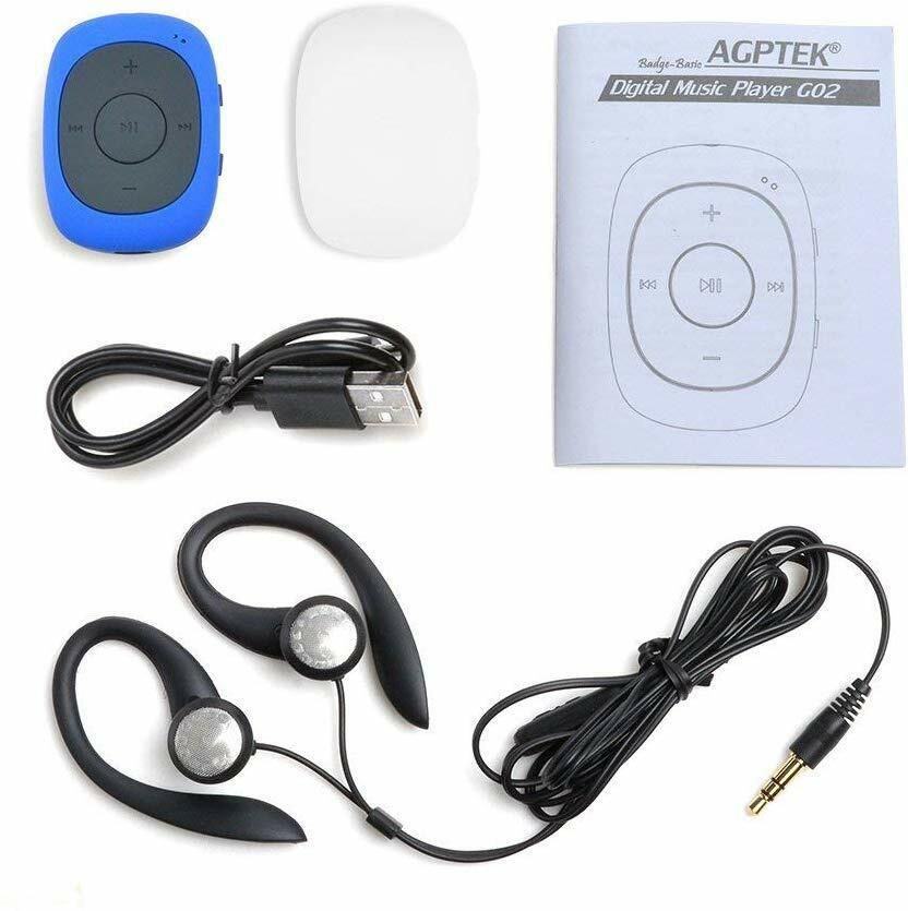 AGPTEK G02 Mini MP3 Player 8GB Clip FM-Radio Sport Joggen Zubehörpaket Blau