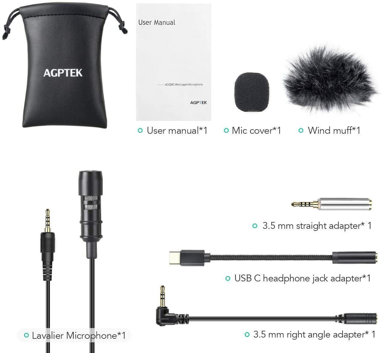 AGPTEK Lavalier Mikrofon Ansteckmikrofon Videokonferenz Podcast iPhone Android