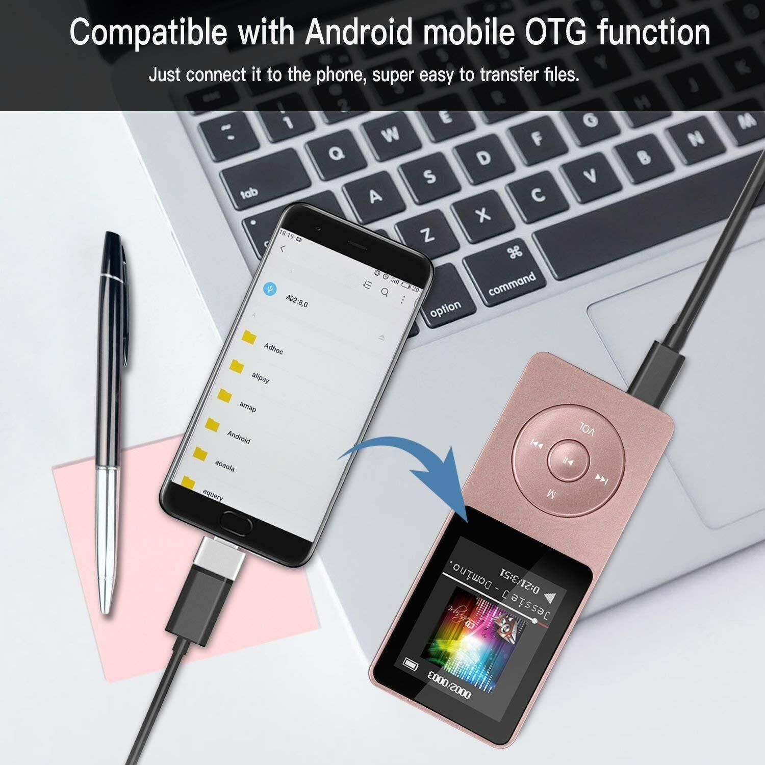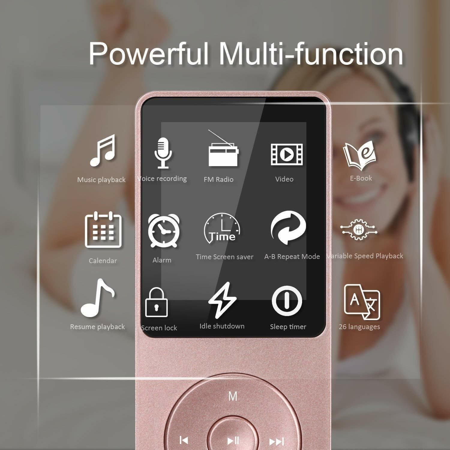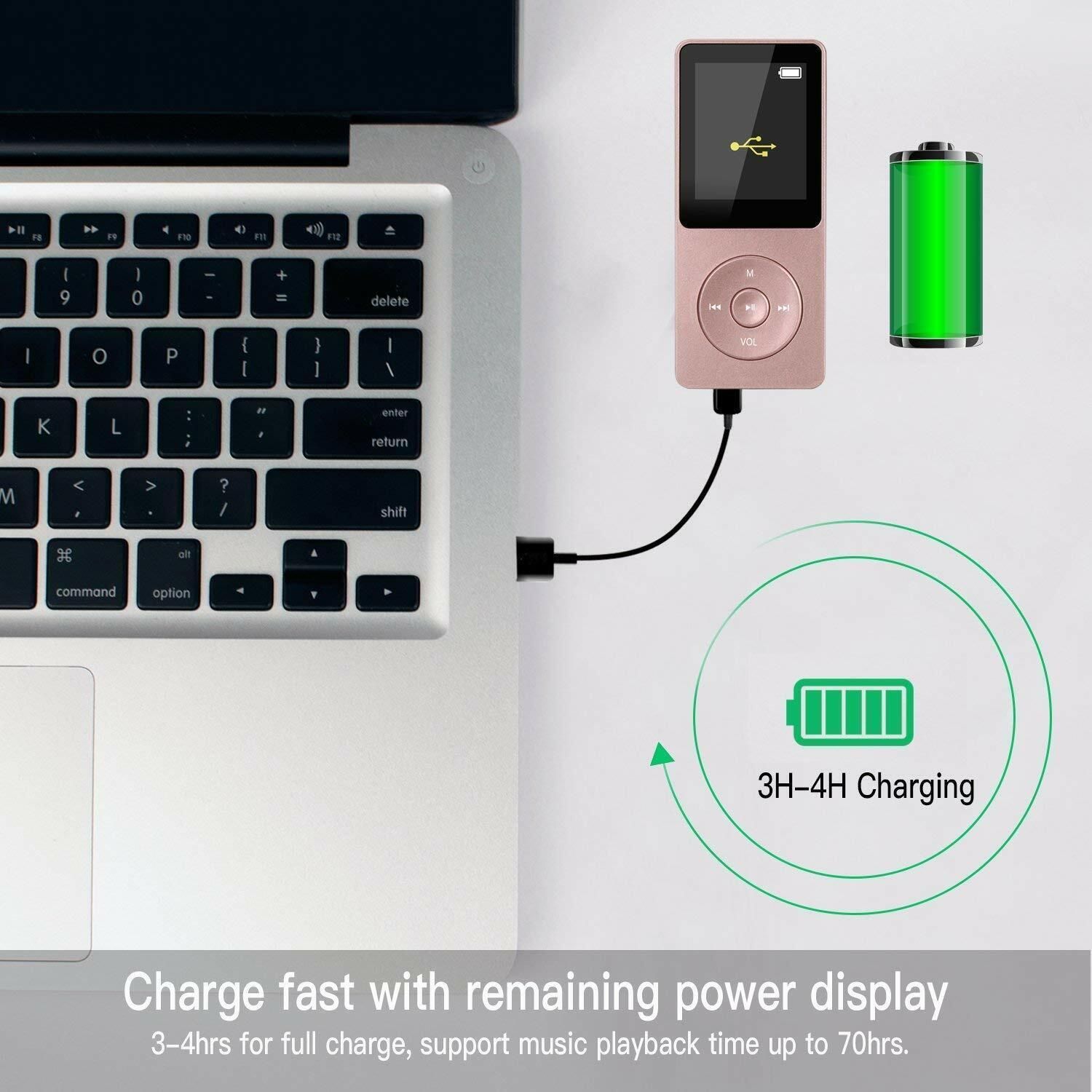 AGPTEK MP3 Player 8 GB 70 Stunden Wiedergabezeit OTG Funktion FM Radio Rosa