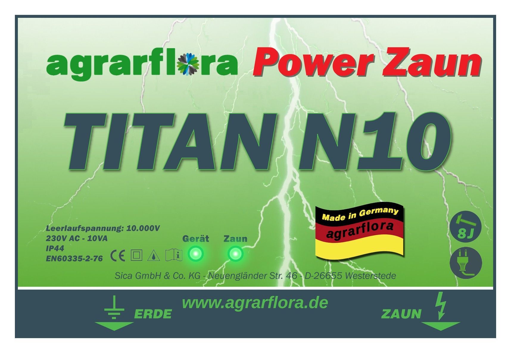 Agrarflora Weidezaungerät TITAN N10 - 10.000 Volt - 8 Joule - 230V Elektrozaungerät