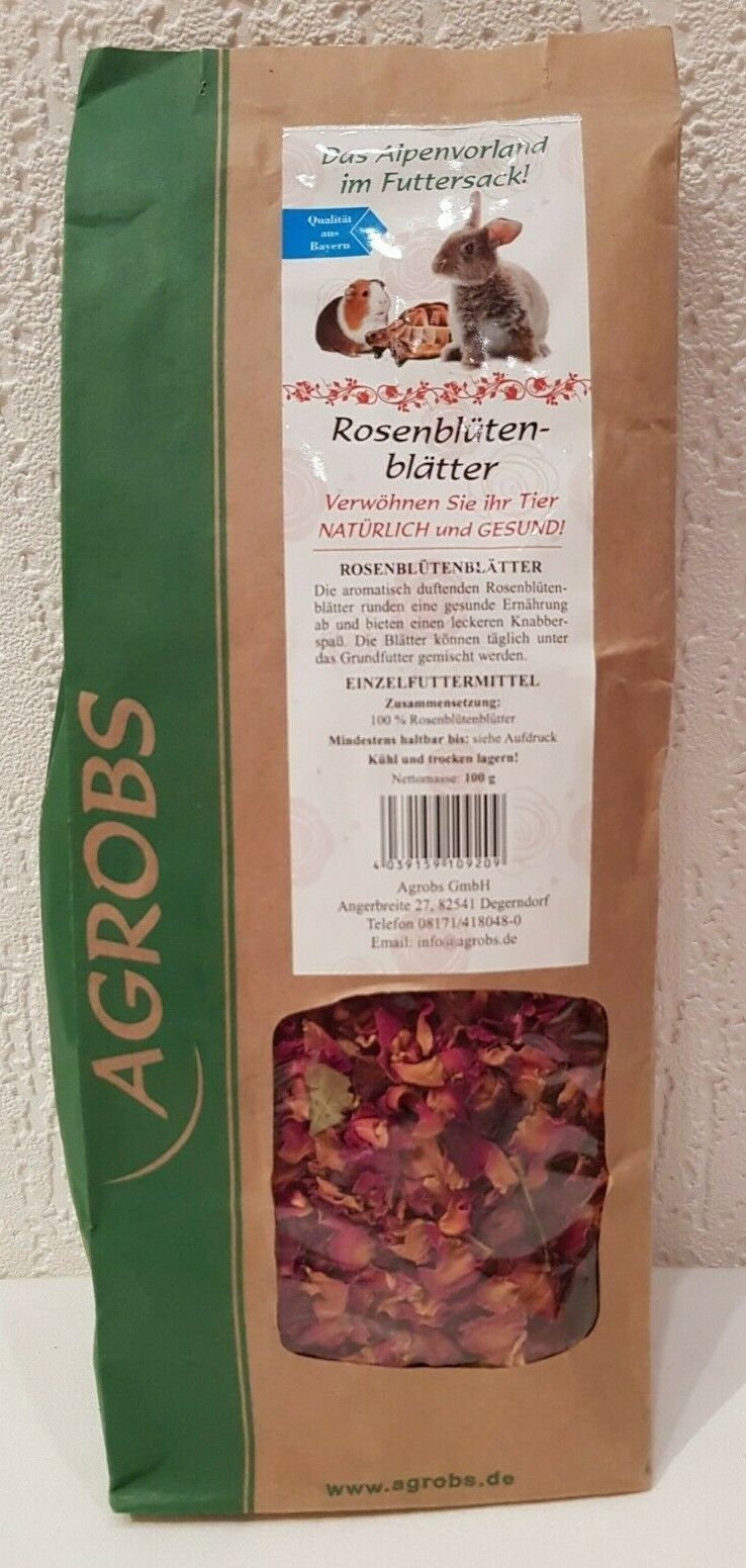 Agrobs Rosenblütenblätter 100g - Zusatzfutter für Nager + Schildkröten MHD 09/21