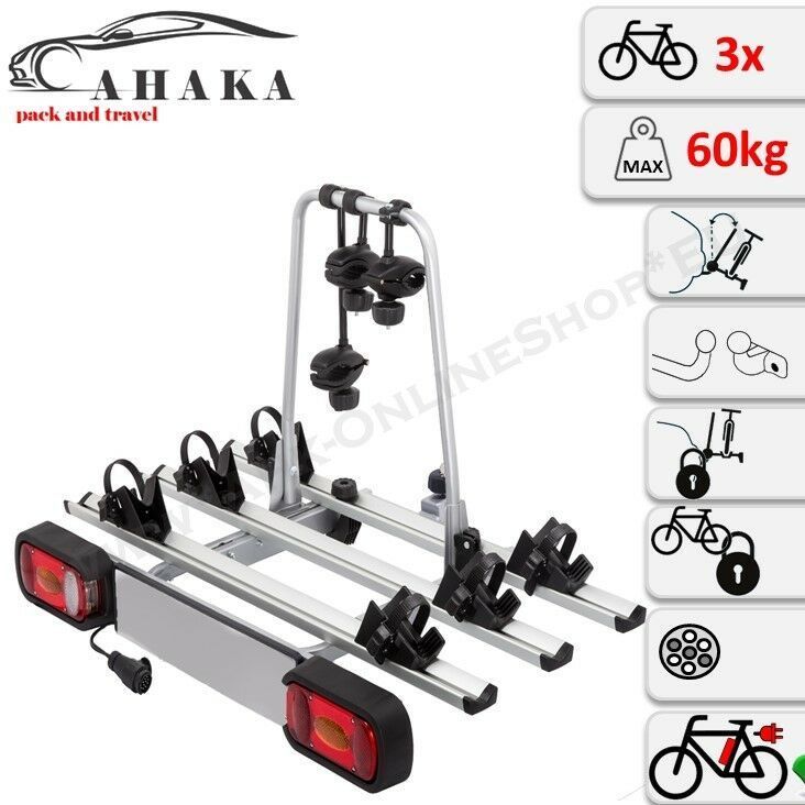 AHIRO3 Fahrradträger 3 Fahrräder abklappbar abschließbar eBike Anhängerkupplung