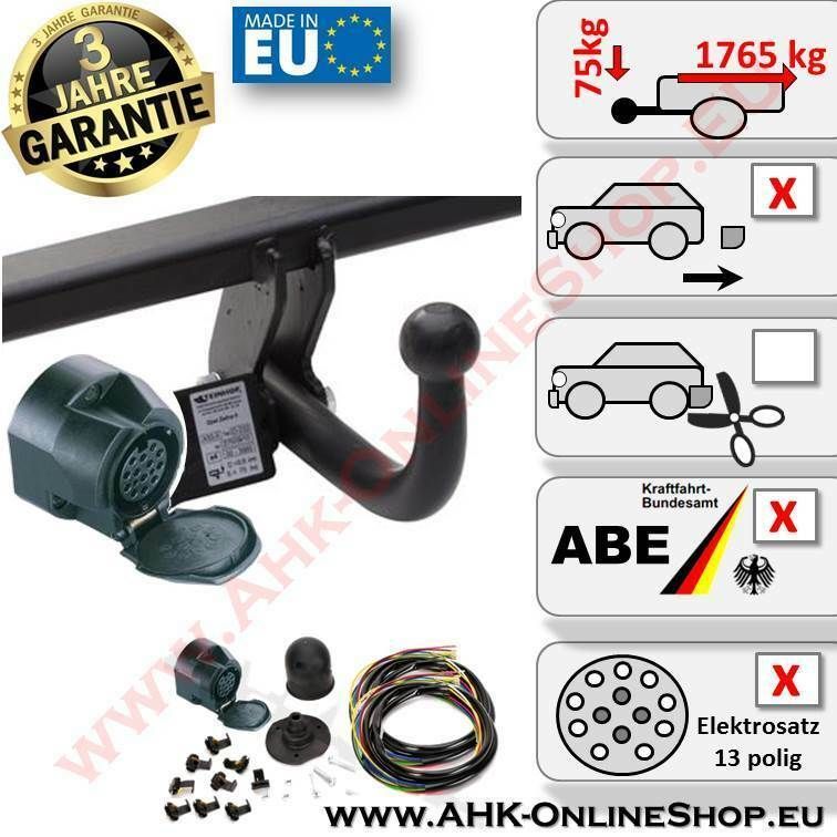 AHK + E-Satz 13 polig Mazda 3 (BK) Bj. 2003-2009 Schrägheck Anhängerkupplung Neu