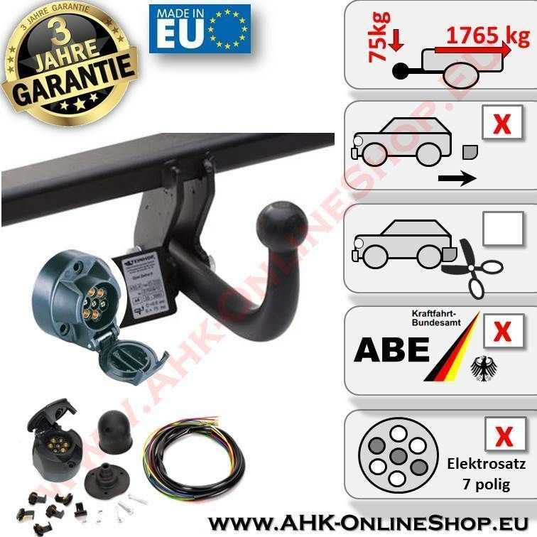 AHK + E-Satz 7 polig Mazda 3 (BK) Bj. 2003-2009 Schrägheck Anhängerkupplung