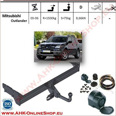 • AHK Anhängerkupplung mit Elektrosatz 13 polig für Mitsubishi Outlander 2003-2007
