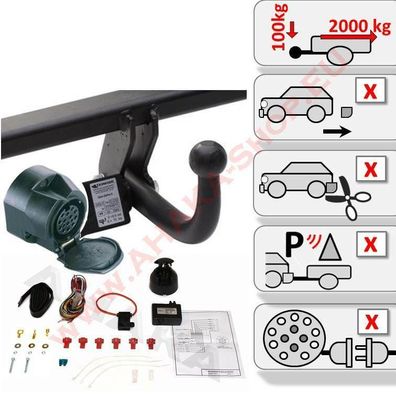 • AHK Anhängerkupplung + E-Satz 13 poli für Mitsubishi Lancer Sportback 2008-2012