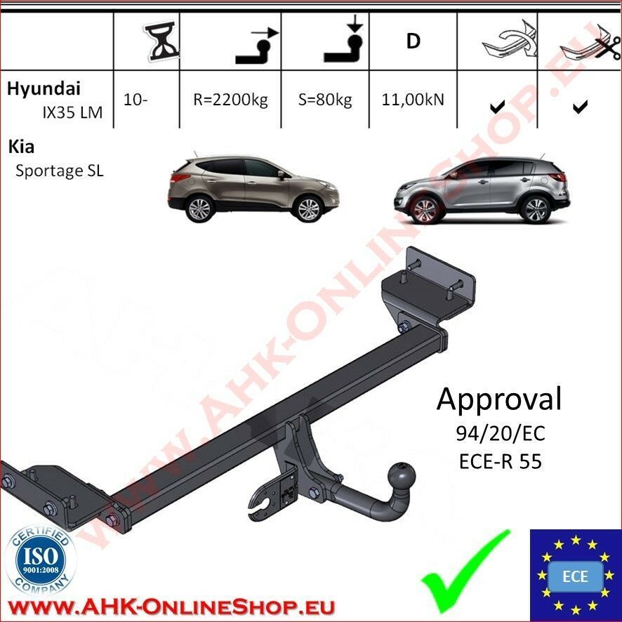 AHK Hyundai ix35 / KIA Sportage SL 10- Anhängevorrichtung Anhängerkupplung AHZV