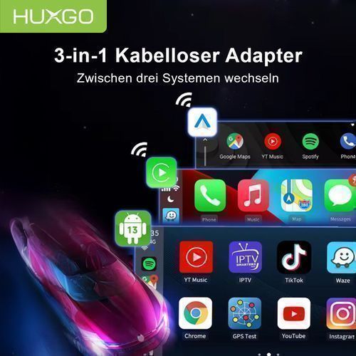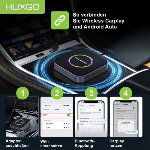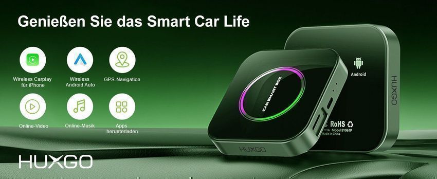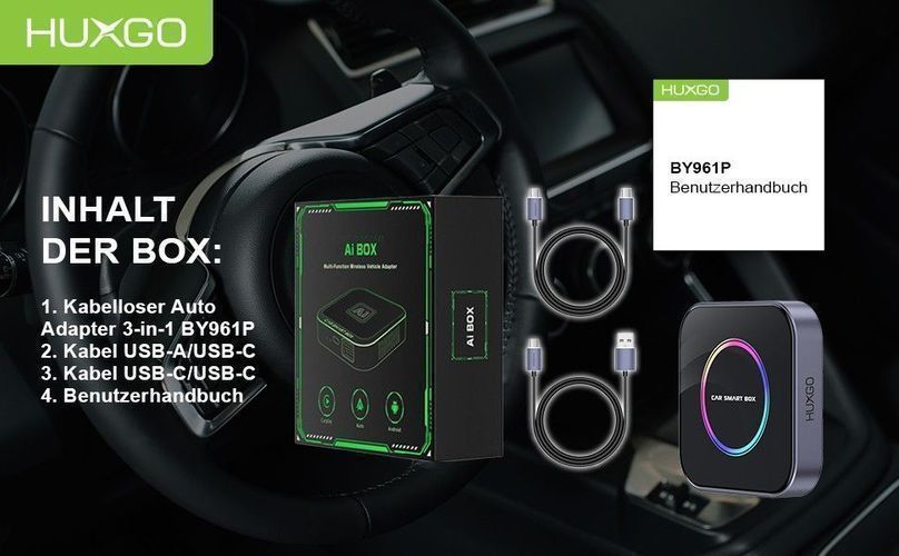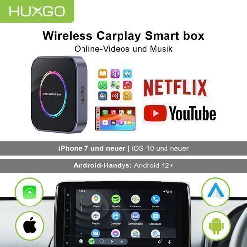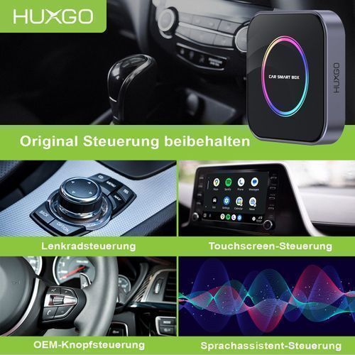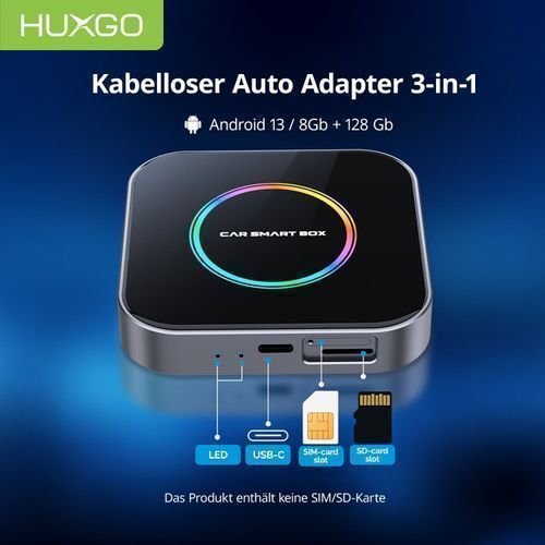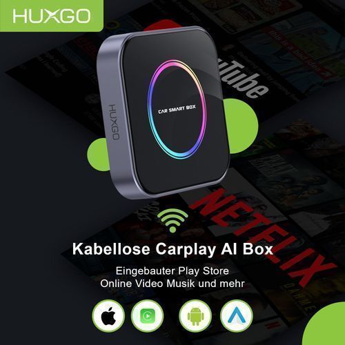 HUXGO AI Box Carplay & Android Auto, Eingebautes Android 13 mit YouTube, Netflix 8 + 128Gb