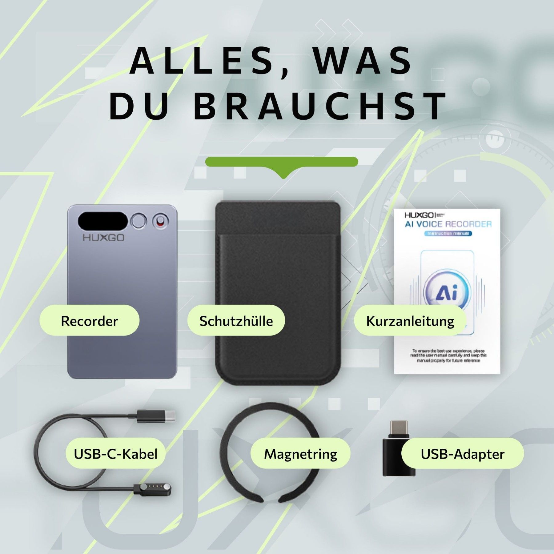 AI Diktiergerät 64GB - Dual-Mikrofon Rauschunterdrückung - 35 h Akku, Bluetooth 5.3