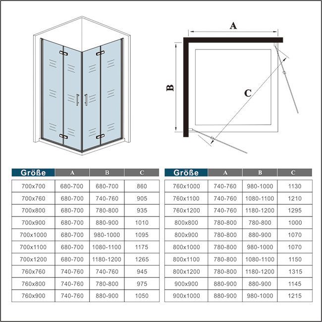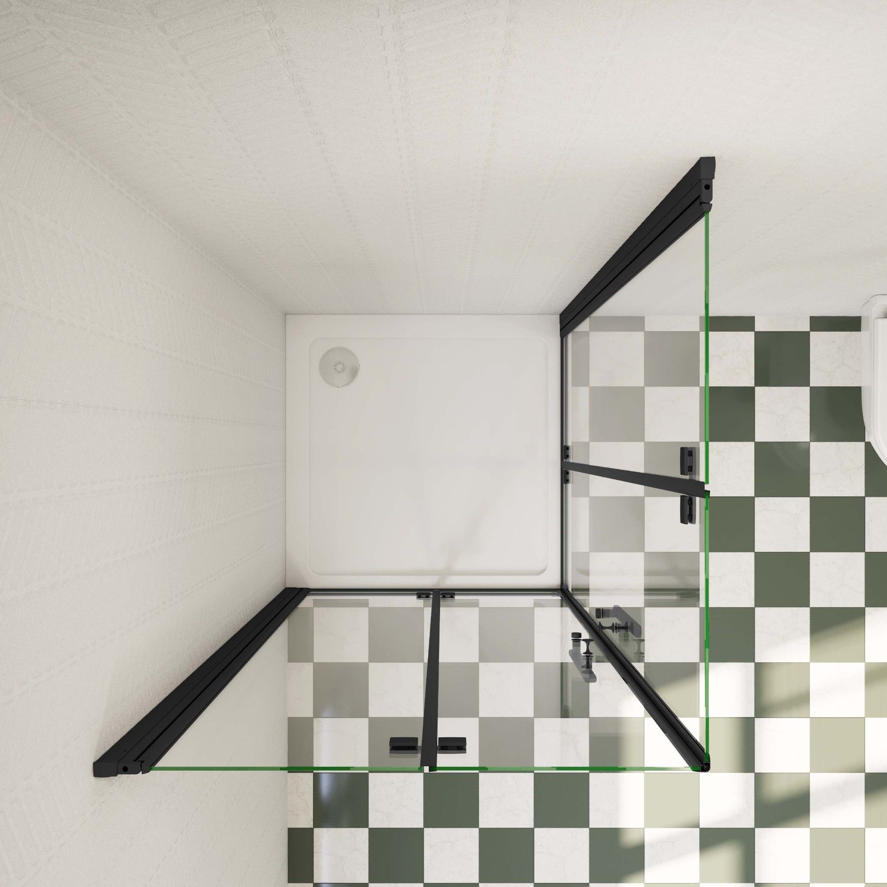 AICA 100x90cm Schwarz Eckeinstieg 180° Falttür Duschkabine H.185cm 6mm NANO GLAS