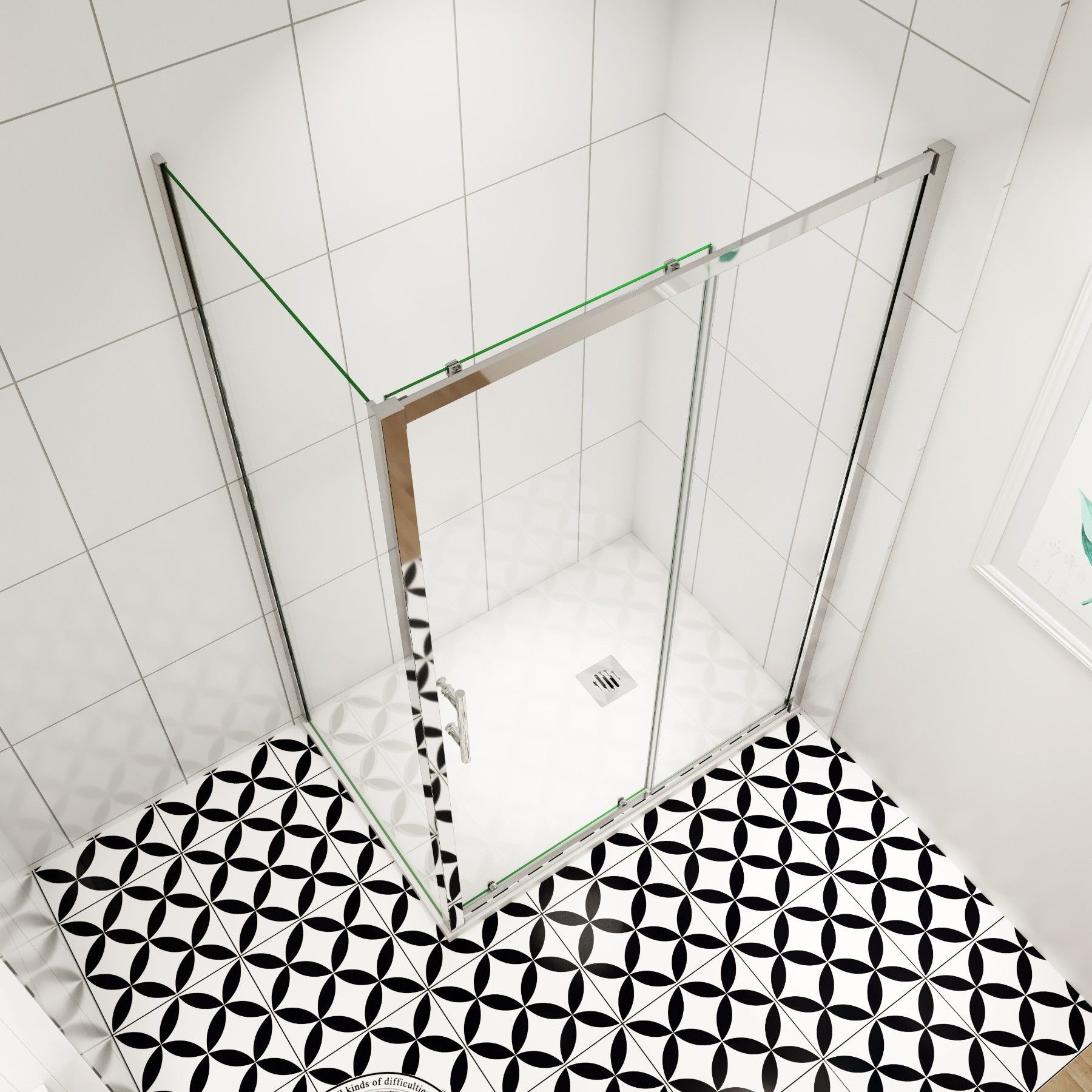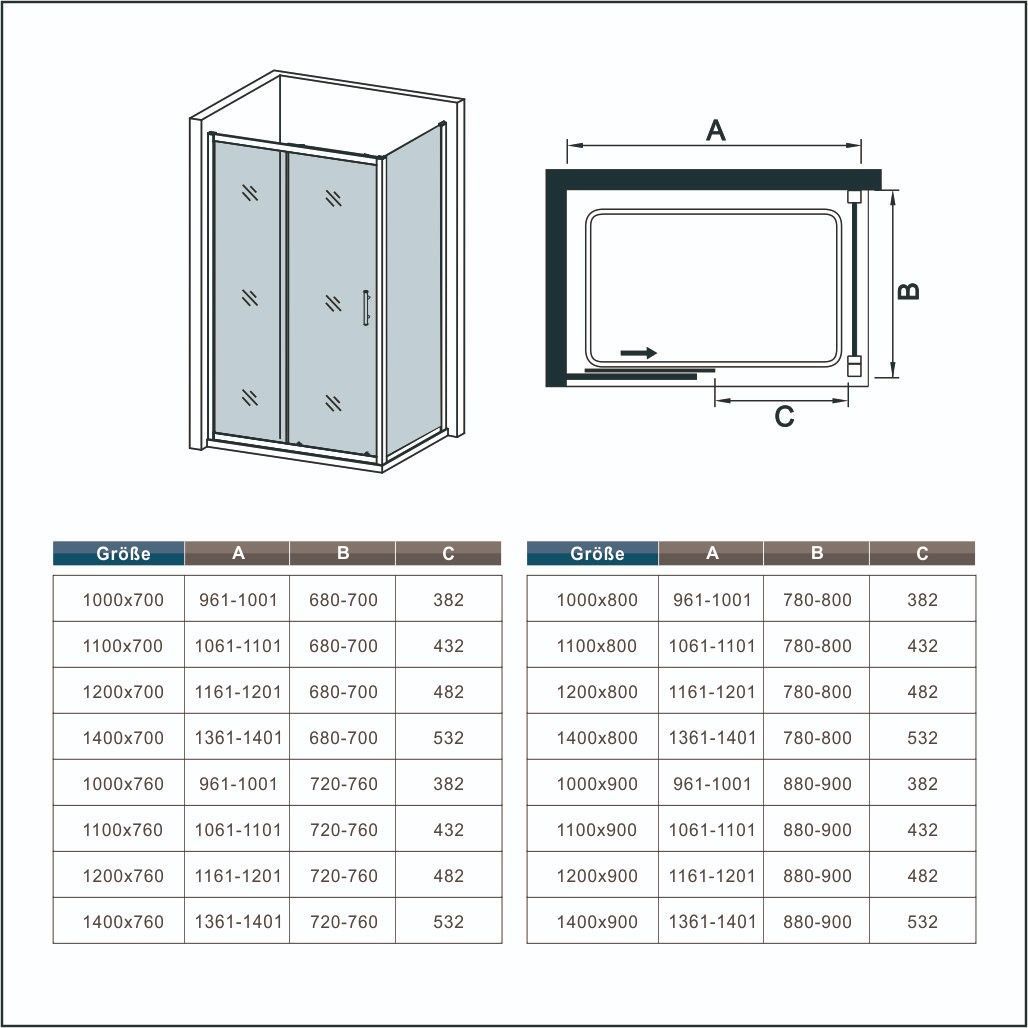 AICA 110cm Schiebetür mit 70cm Seitenwand H.190cm Duschkabine Schiebetür