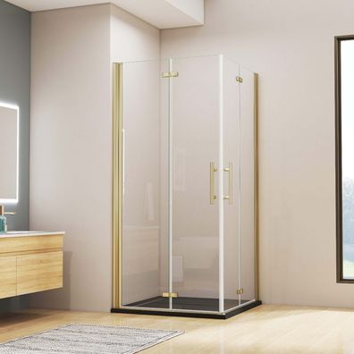AICA 80x70cm Gold Gebürstet Duschtür Falttür Duschkabine H.195cm 6mm NANO GLAS