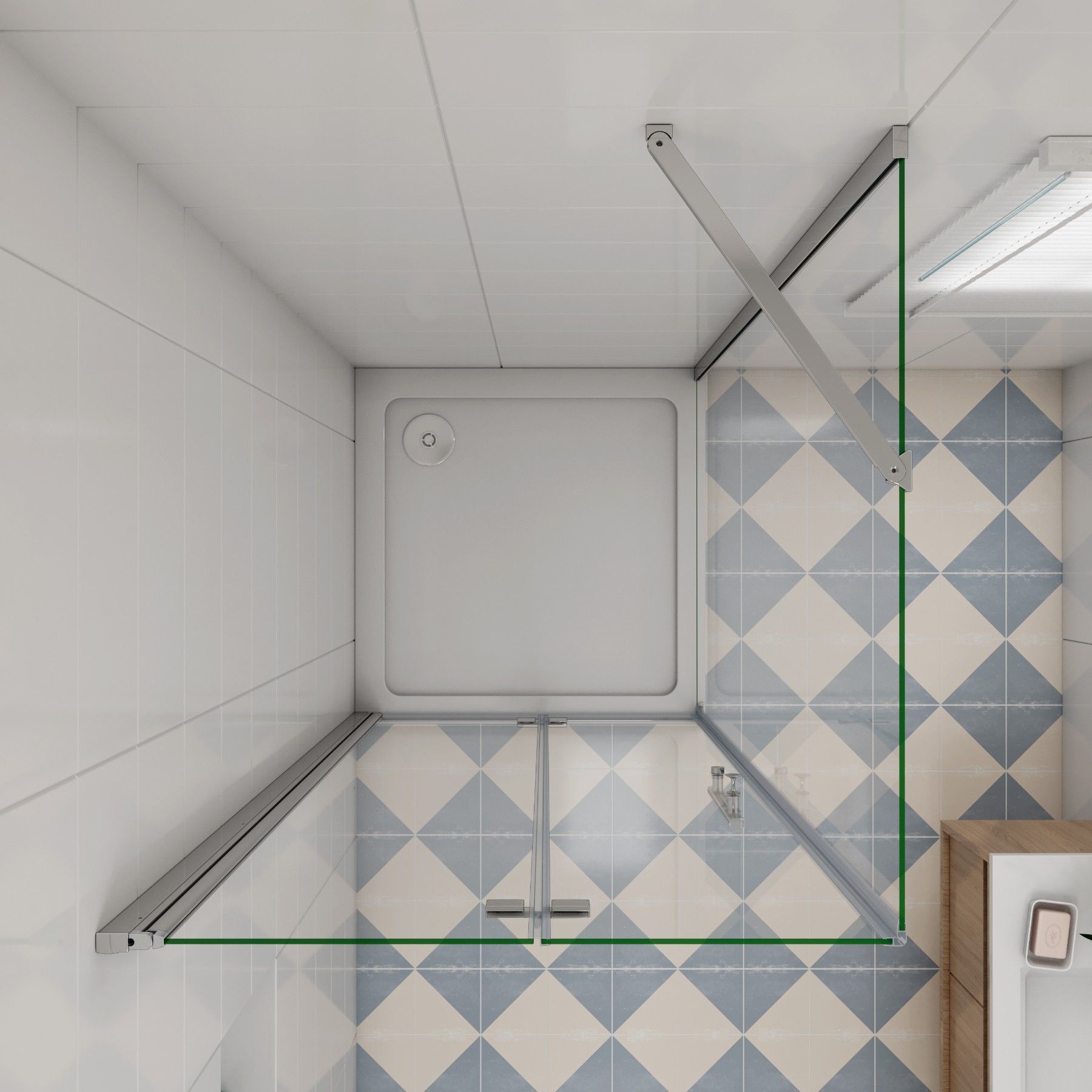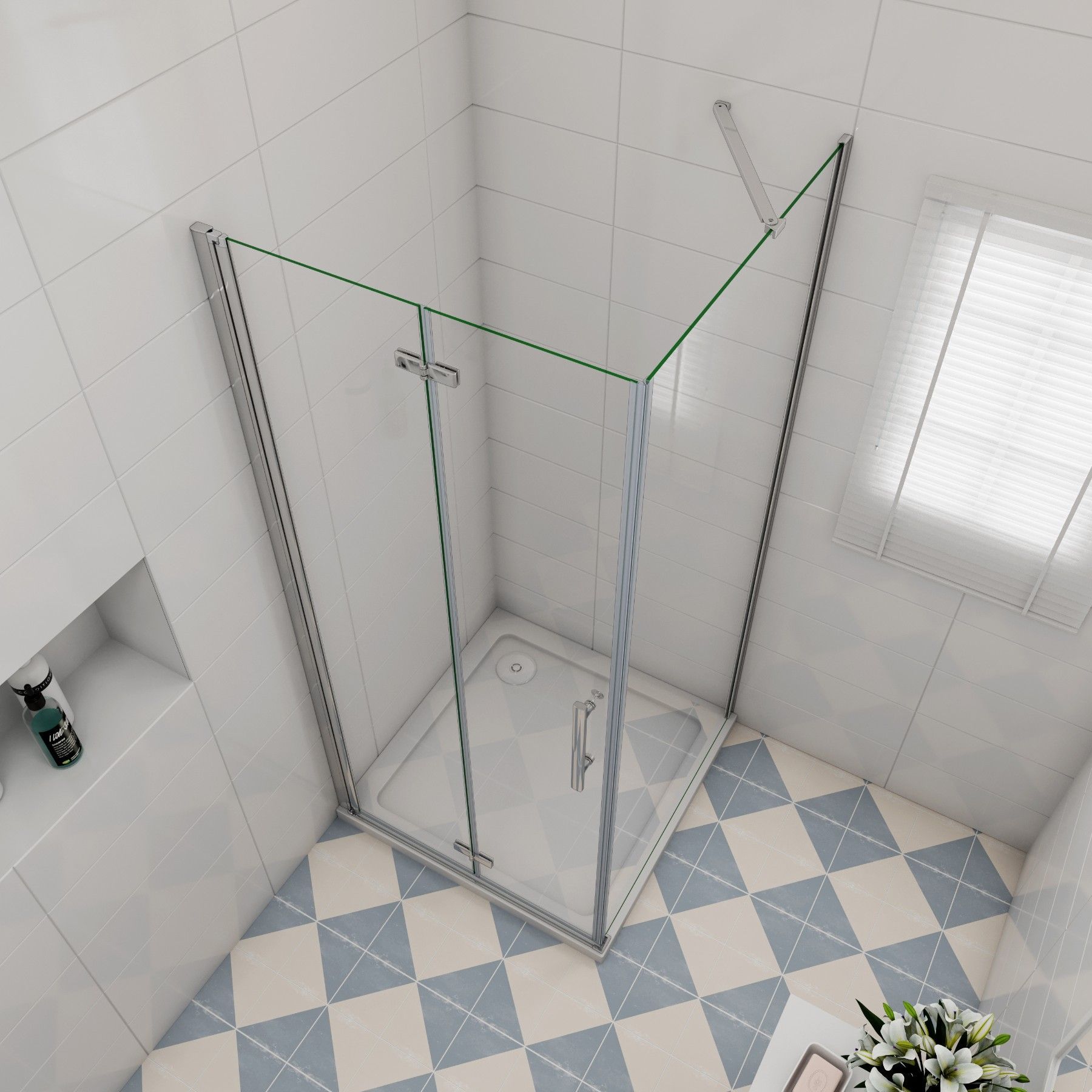 AICA 90cm Tür x 76cm Seitenwand x H.185cm 6mm NANO GLAS Falttür Duschkabine