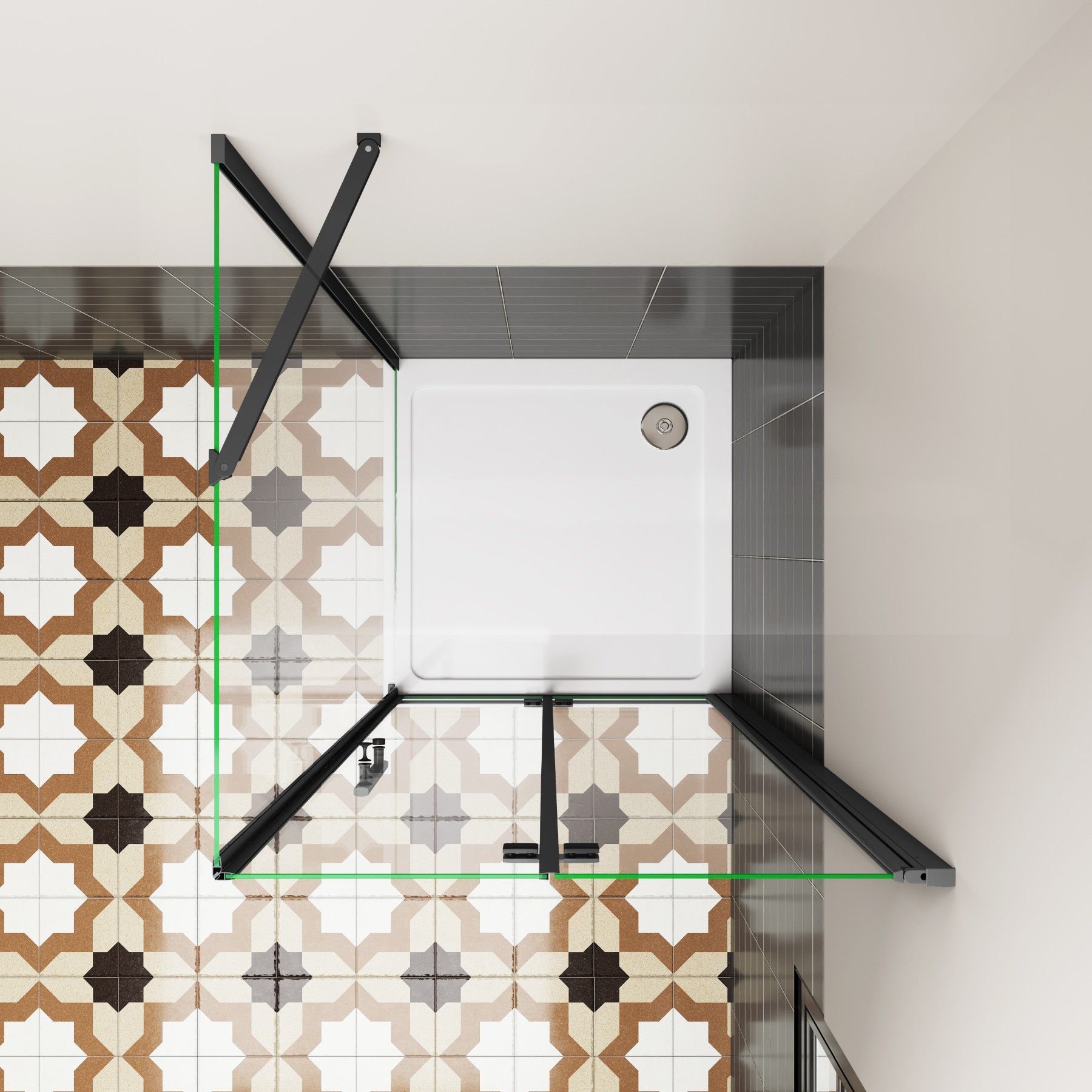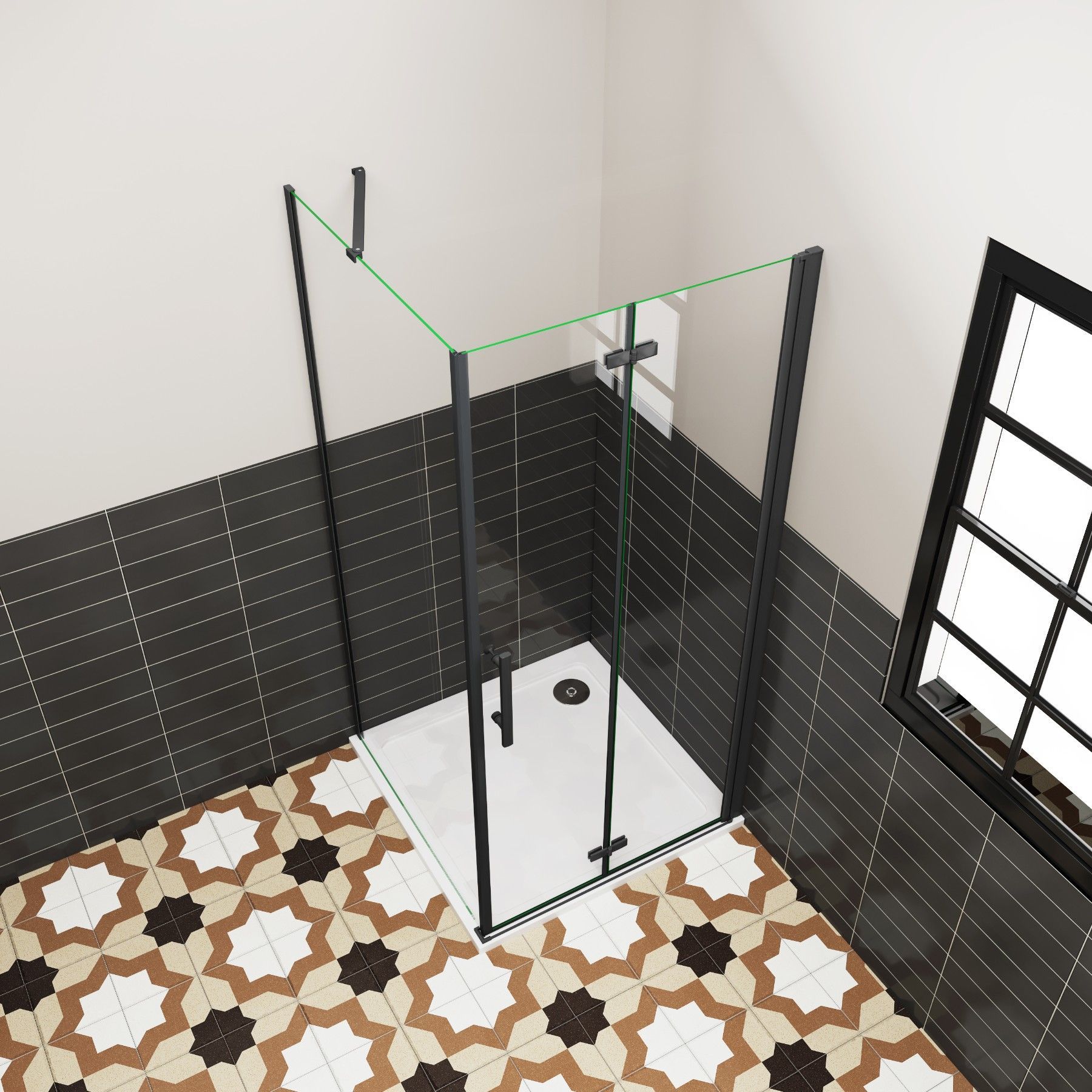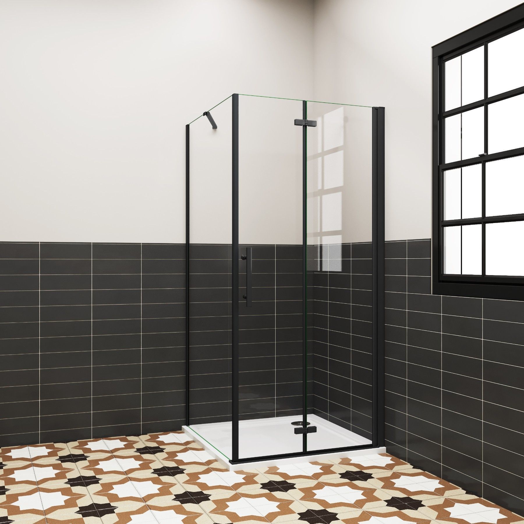 AICA 76x90cm x H.195cm Schwarz Eckig Duschkabinen Falttür 6mm NANO ESG-Glas