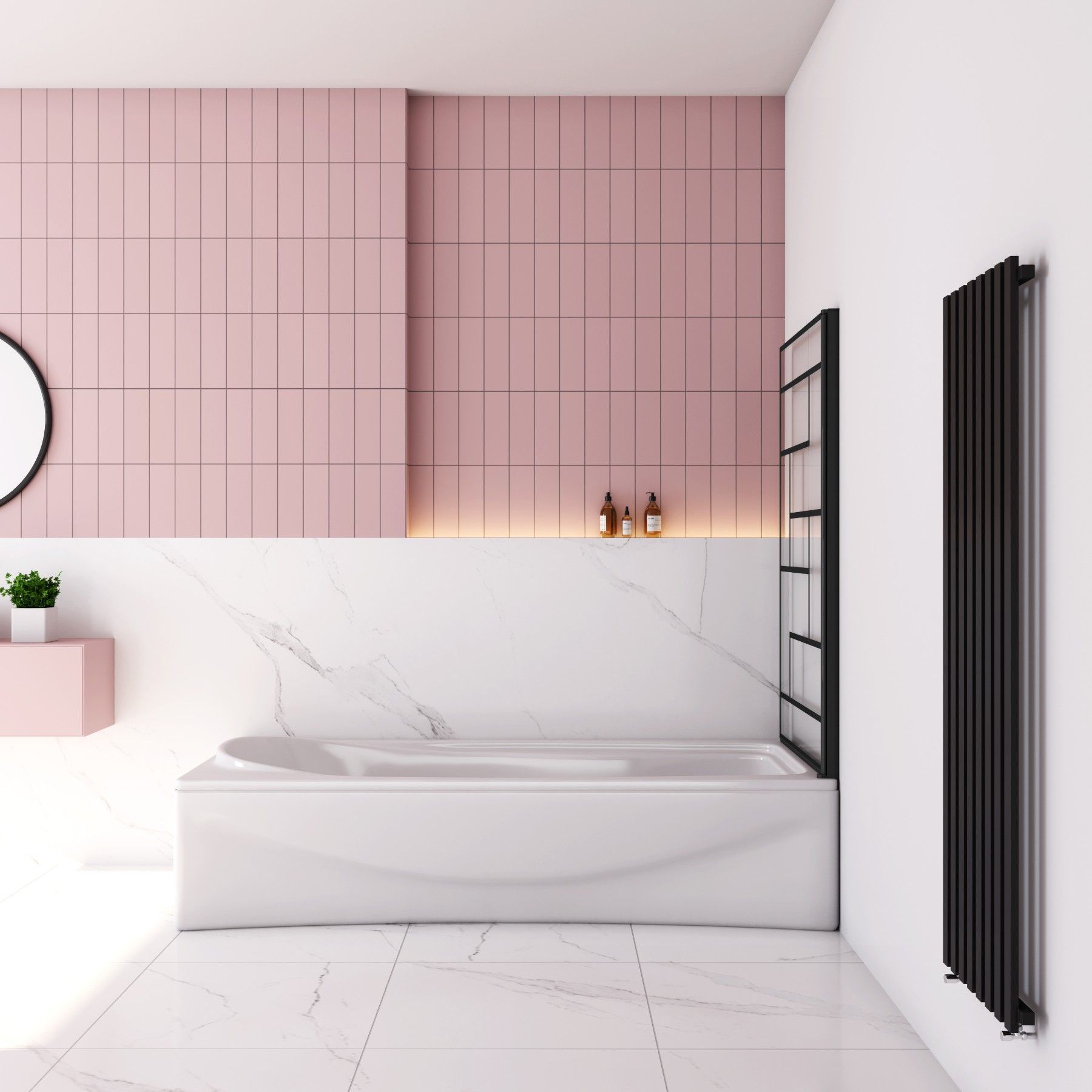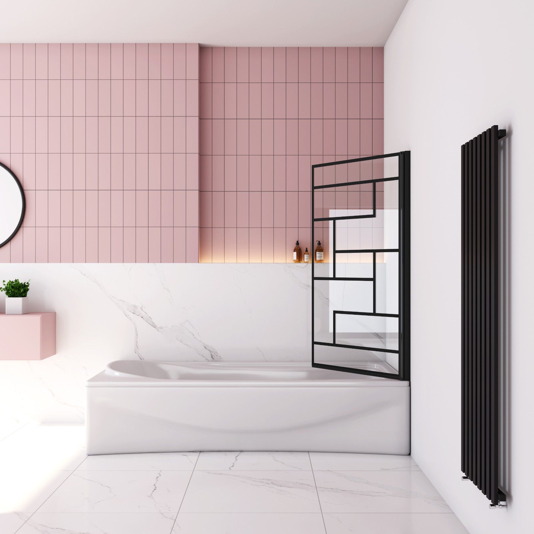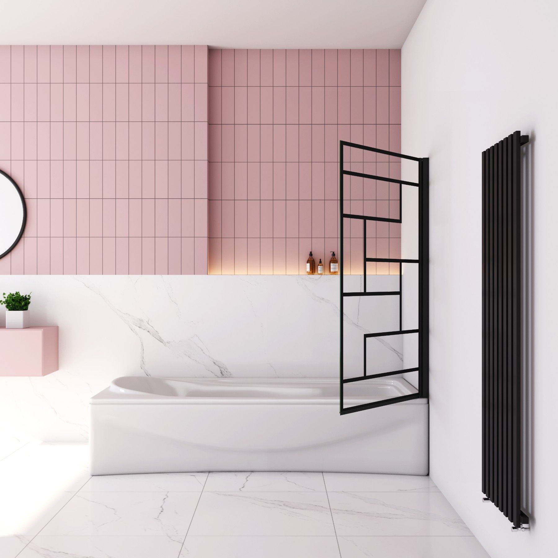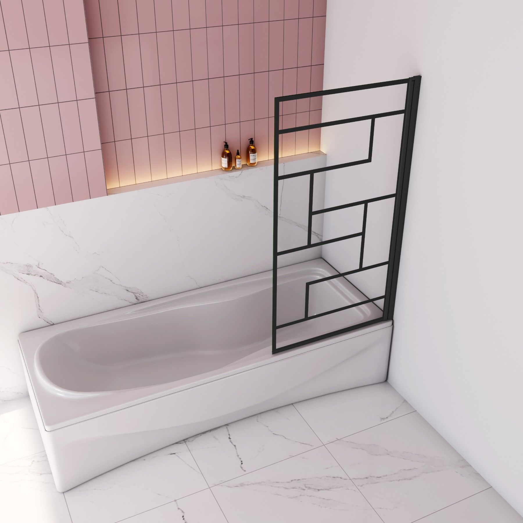 AICA 80x140cm Schwarz Siebdruck Faltwand 180° Drehbar Badewanneaufsatz für Badewanne