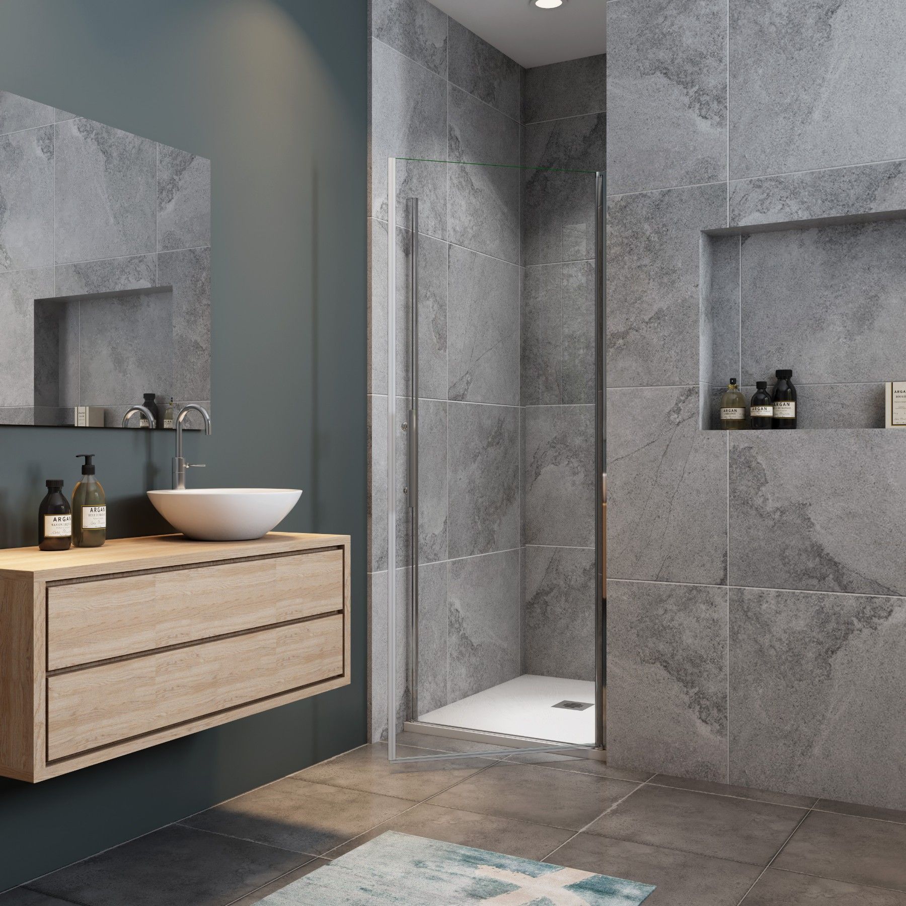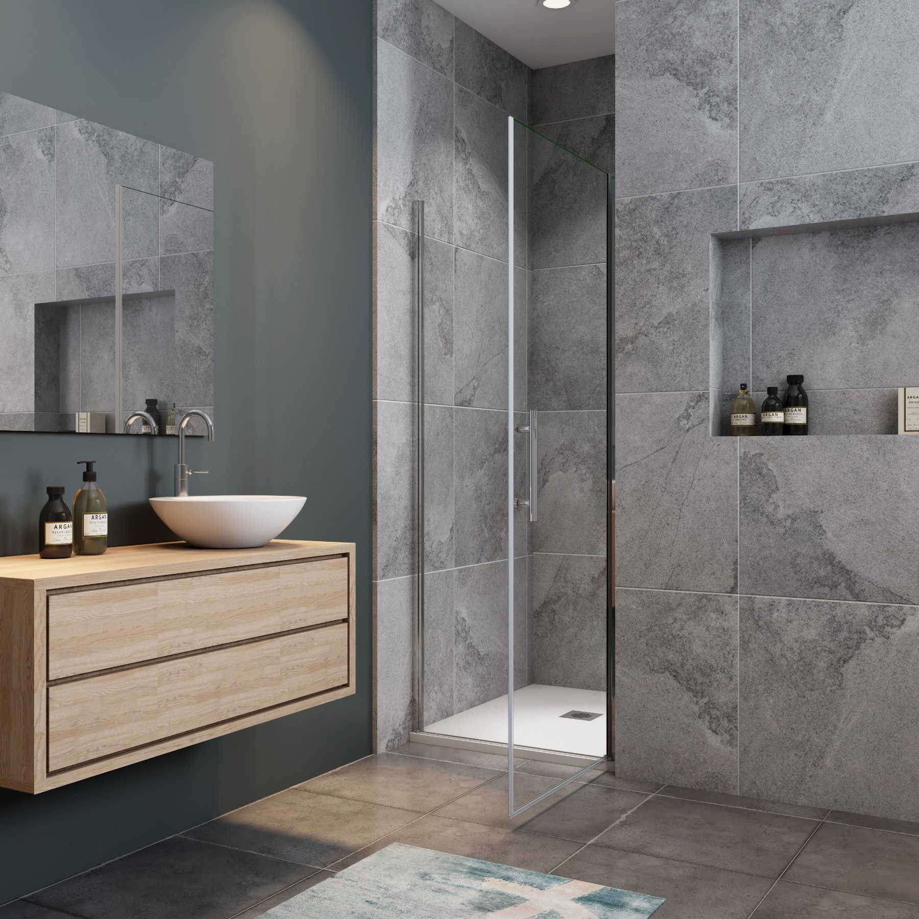 AICA 90 x 185cm Pendeltür Nischentür 6mm NANO GLAS