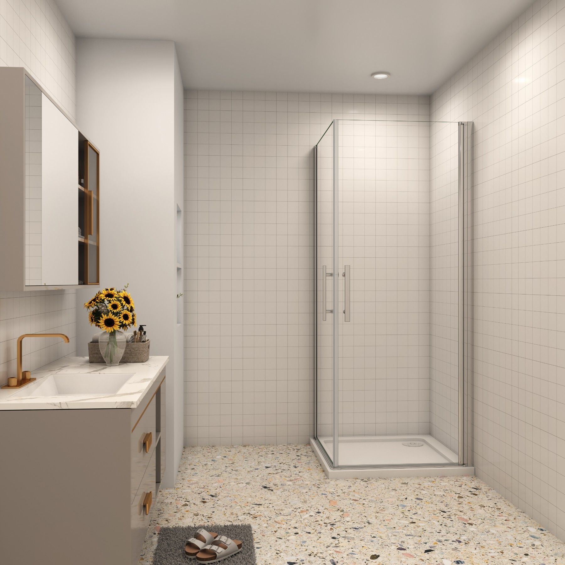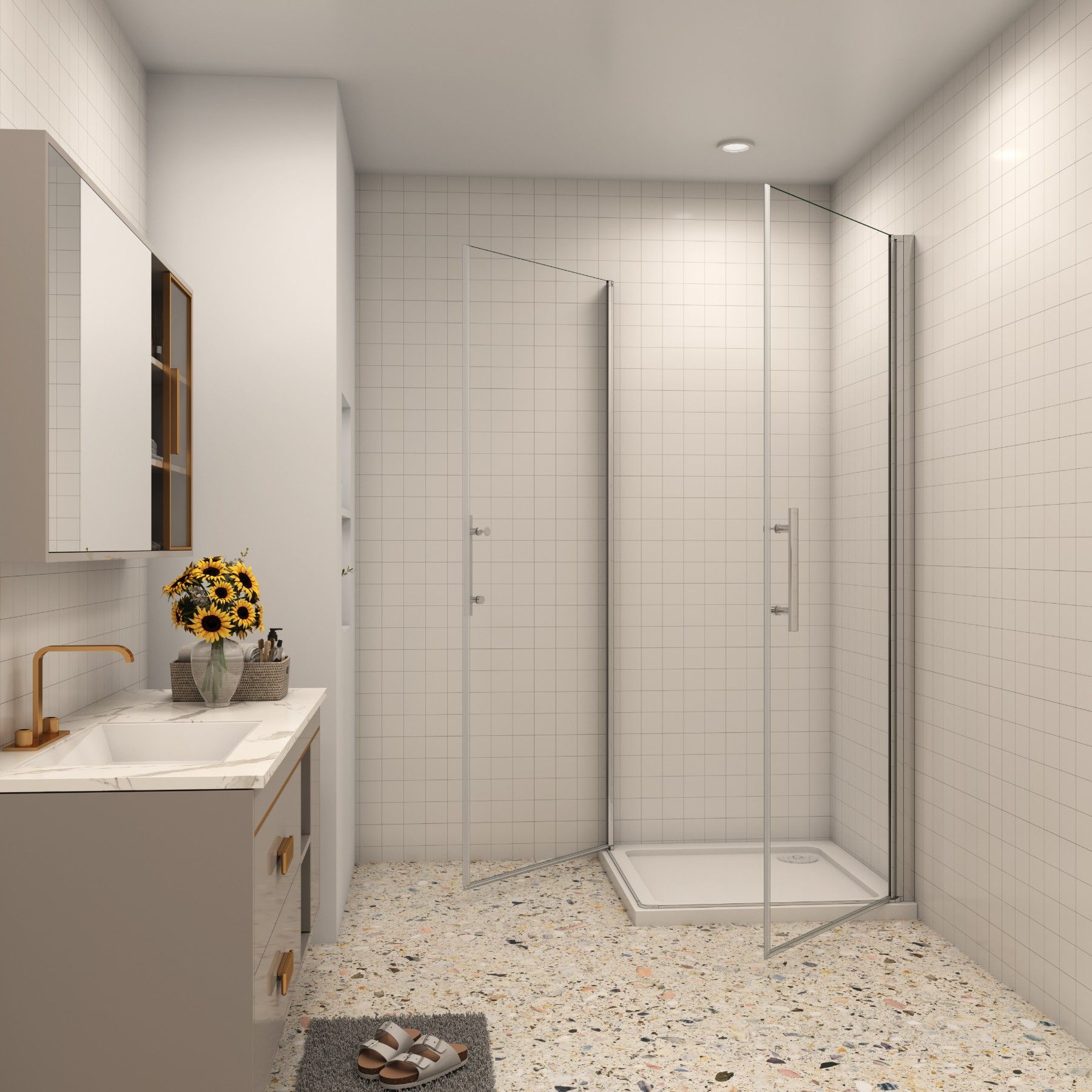 AICA 90x76cm x H.195cm Eckeinstieg Drehtür Duschkabinen 6mm NANO ESG-Glas