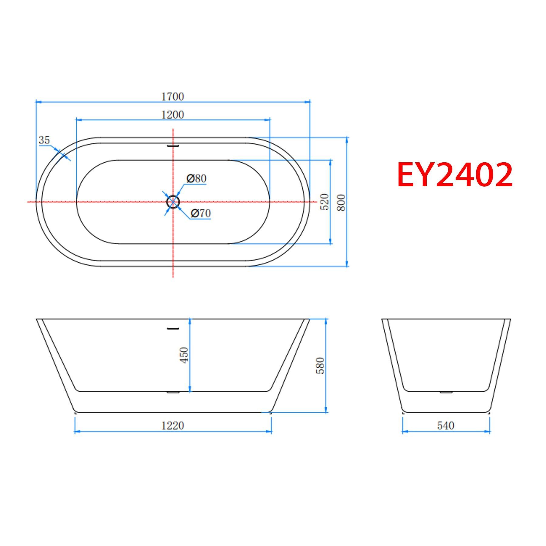 AICA freistehende Badewanne 170x80cm Oval Acrylwannen Vorinstalliertes Zubehör
