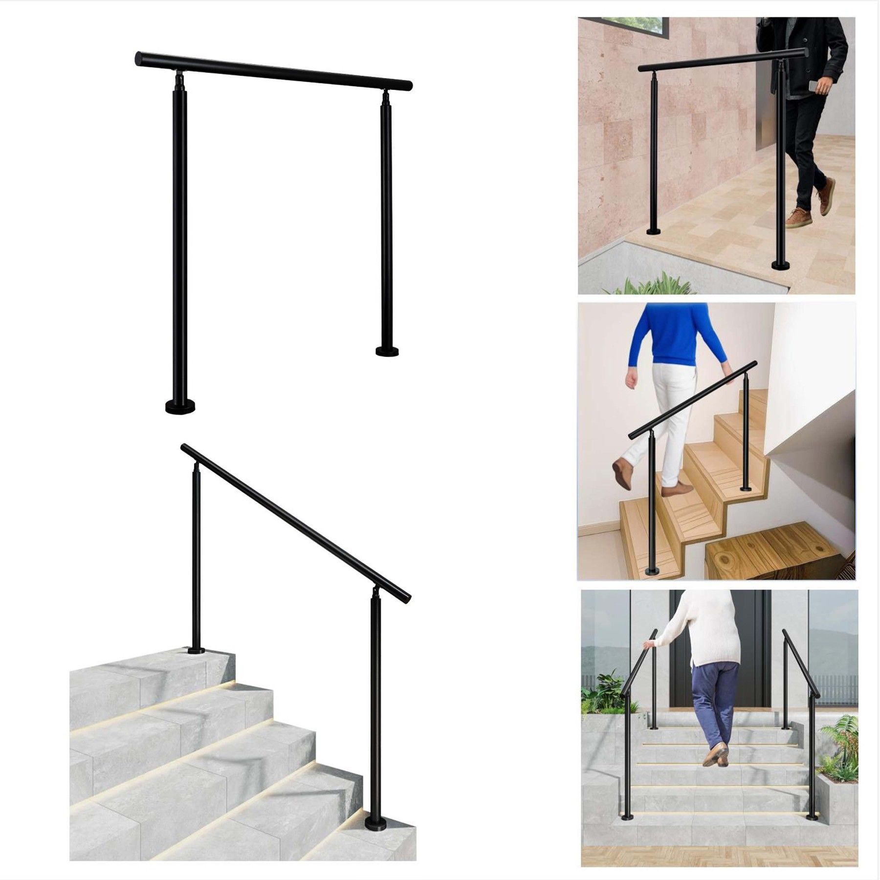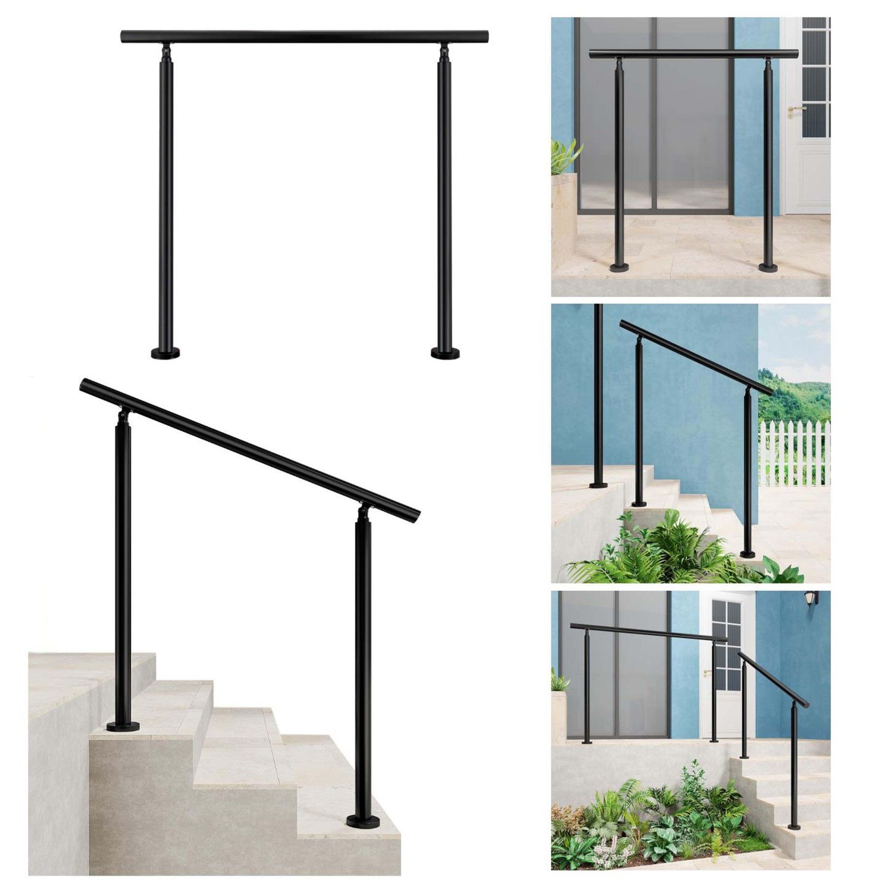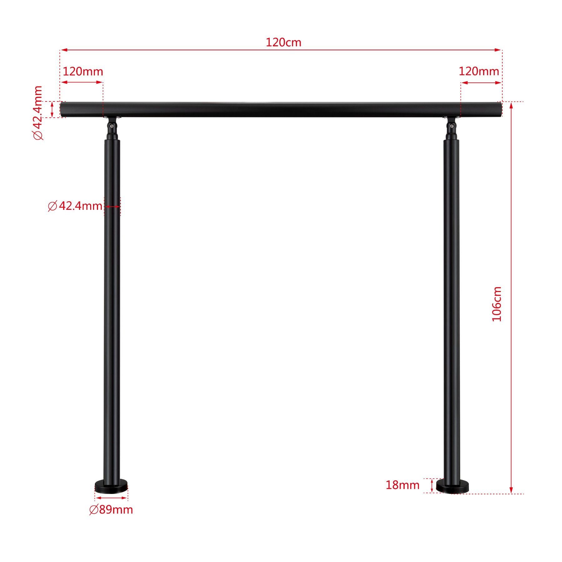 AICA Geländer Edelstahl Handlauf, Treppengeländer, Eingangsgeländer 120 cm Schwarze