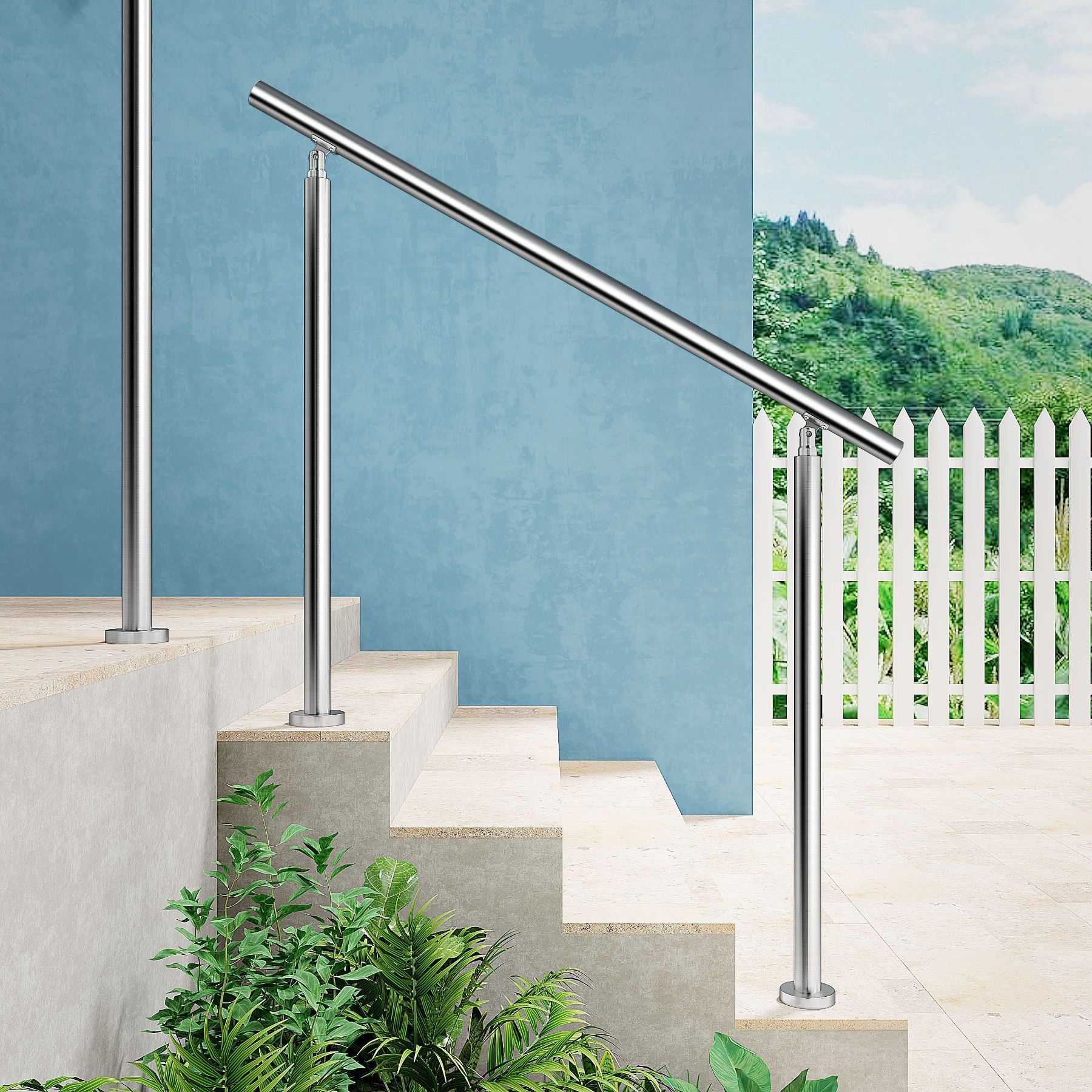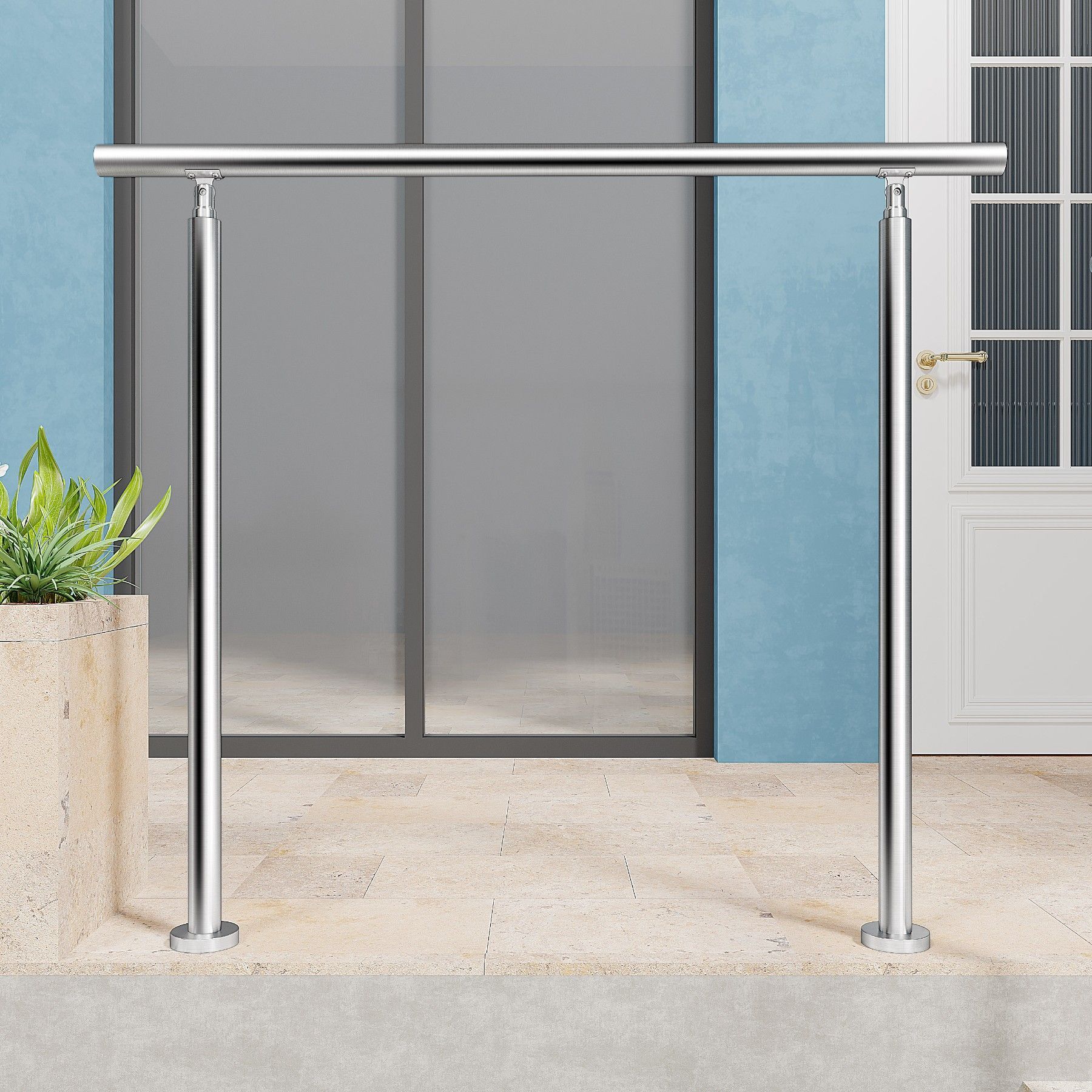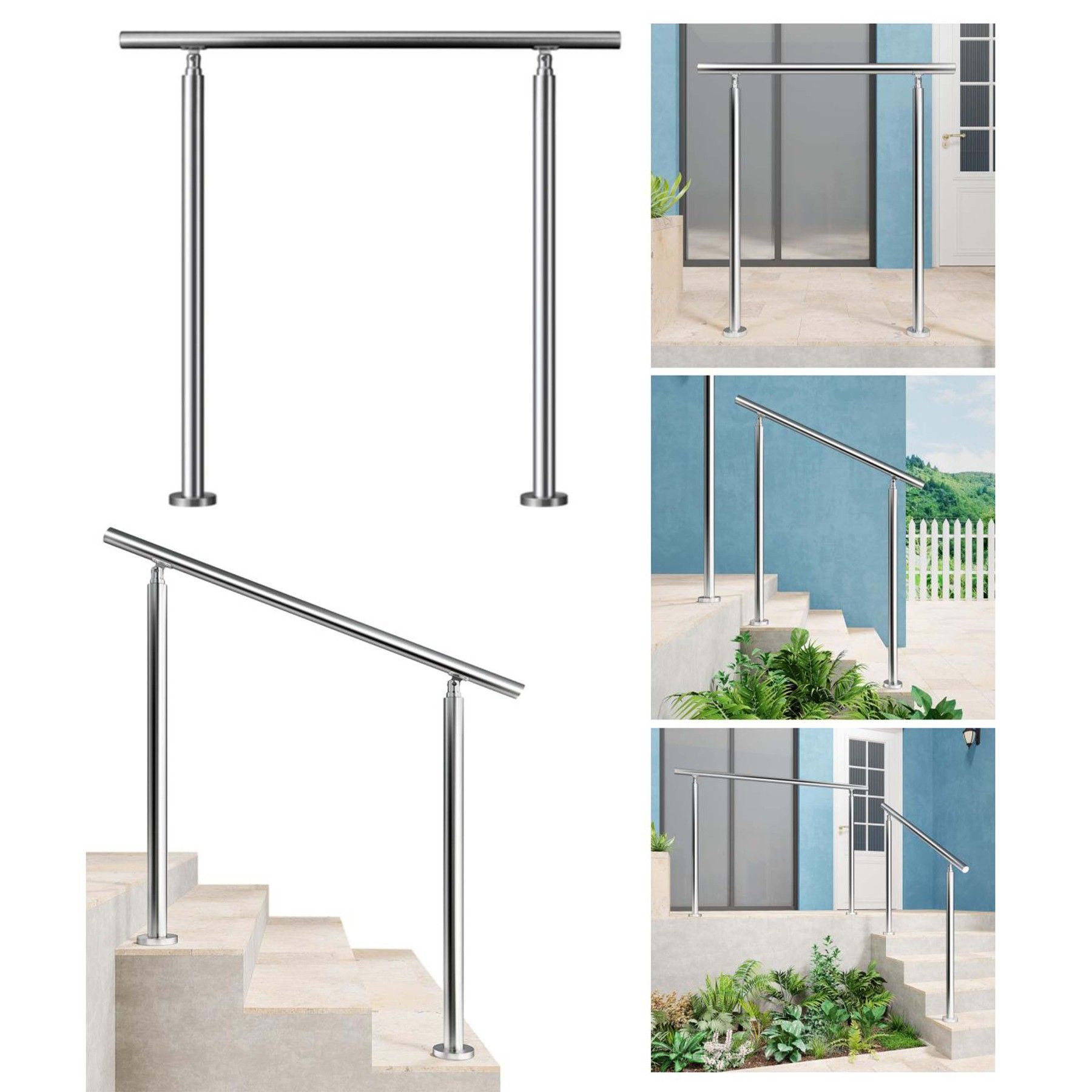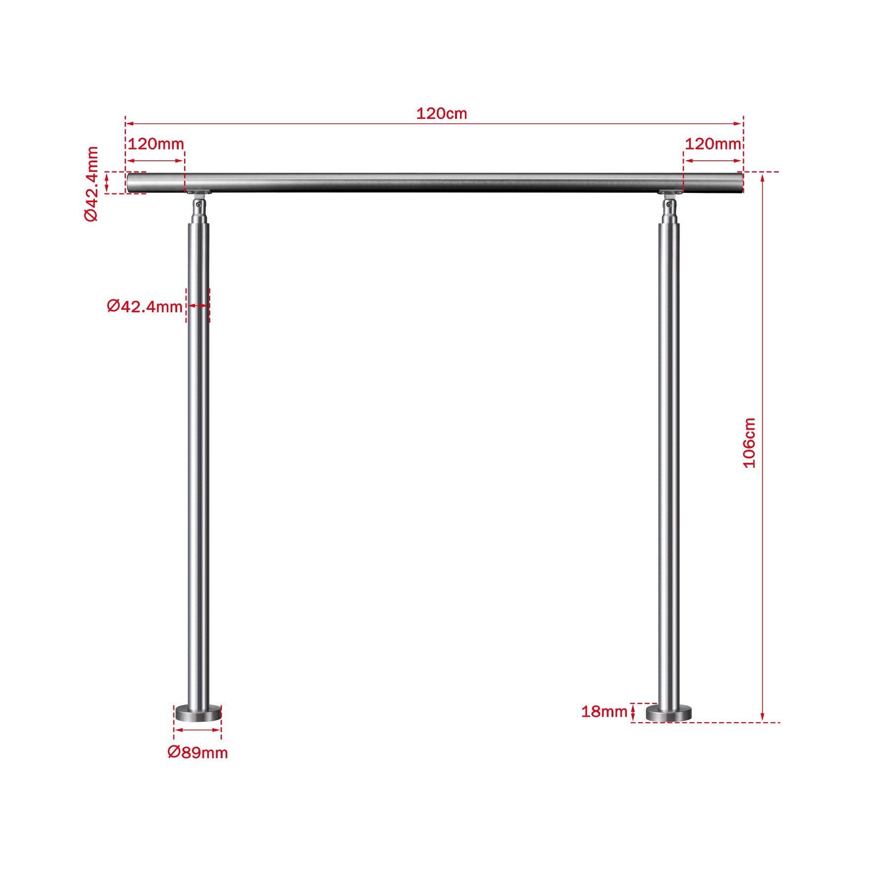 AICA Geländer Edelstahl Handlauf, Treppengeländer, Eingangsgeländer 120 cm Silber