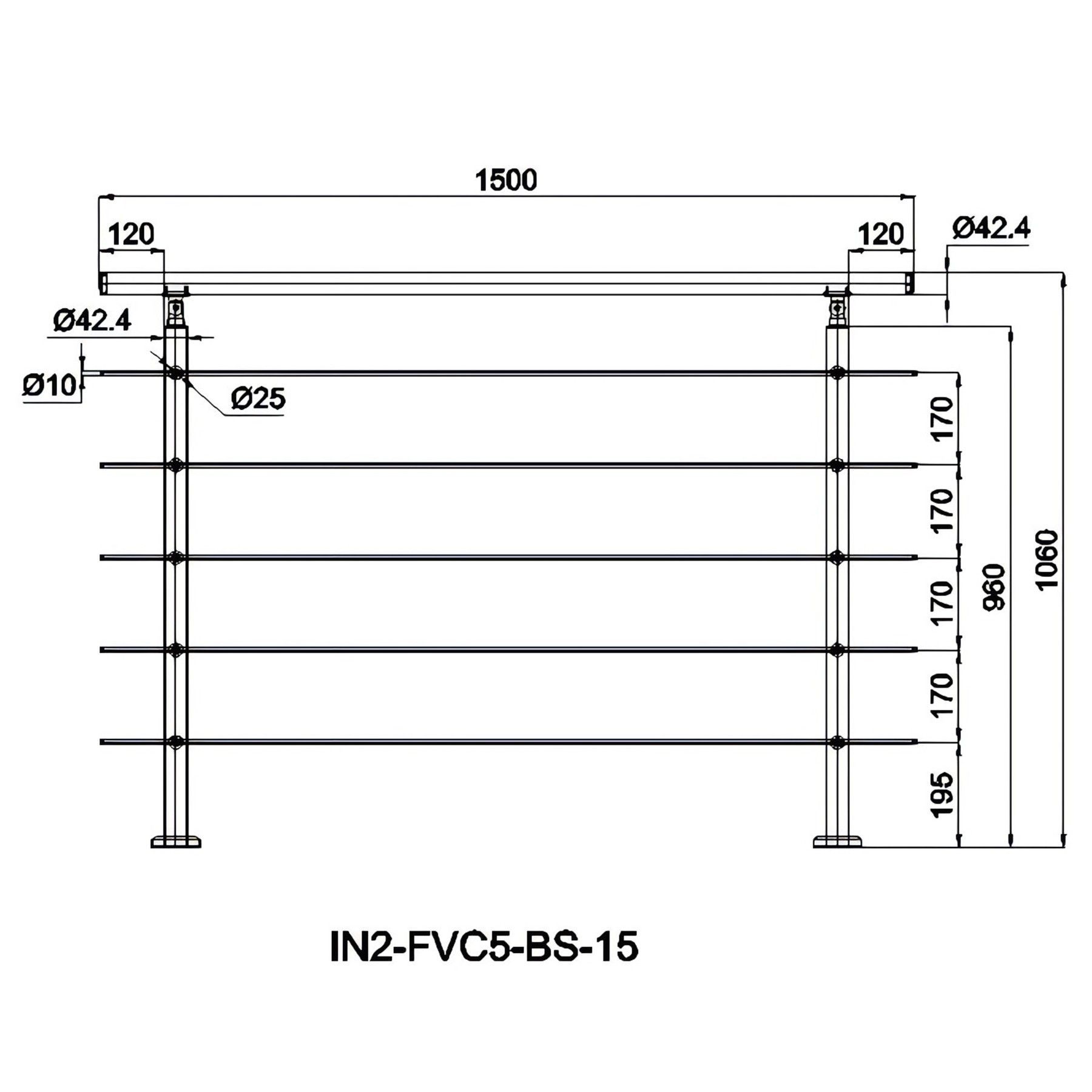 AICA Handlauf 150cm Geländer 5 Querstäbe Treppengeländer Balkongeländer Edelstahl
