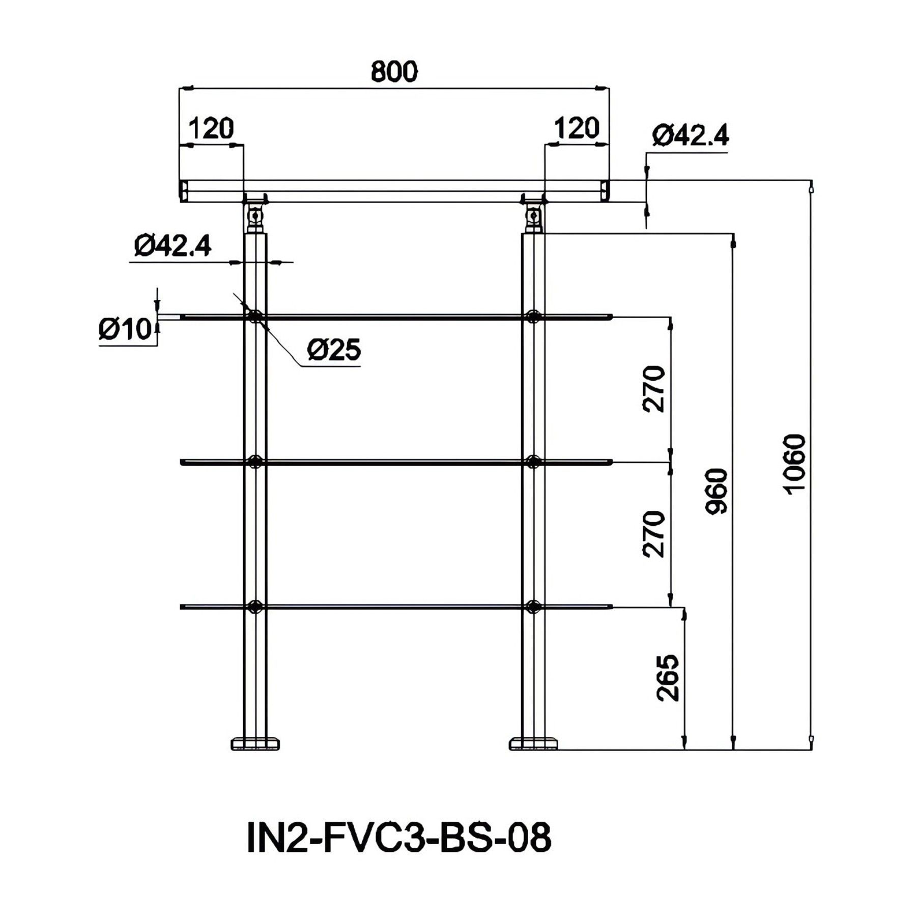 AICA Handlauf 80cm Geländer 3 Querstäbe Treppengeländer Balkongeländer Edelstahl