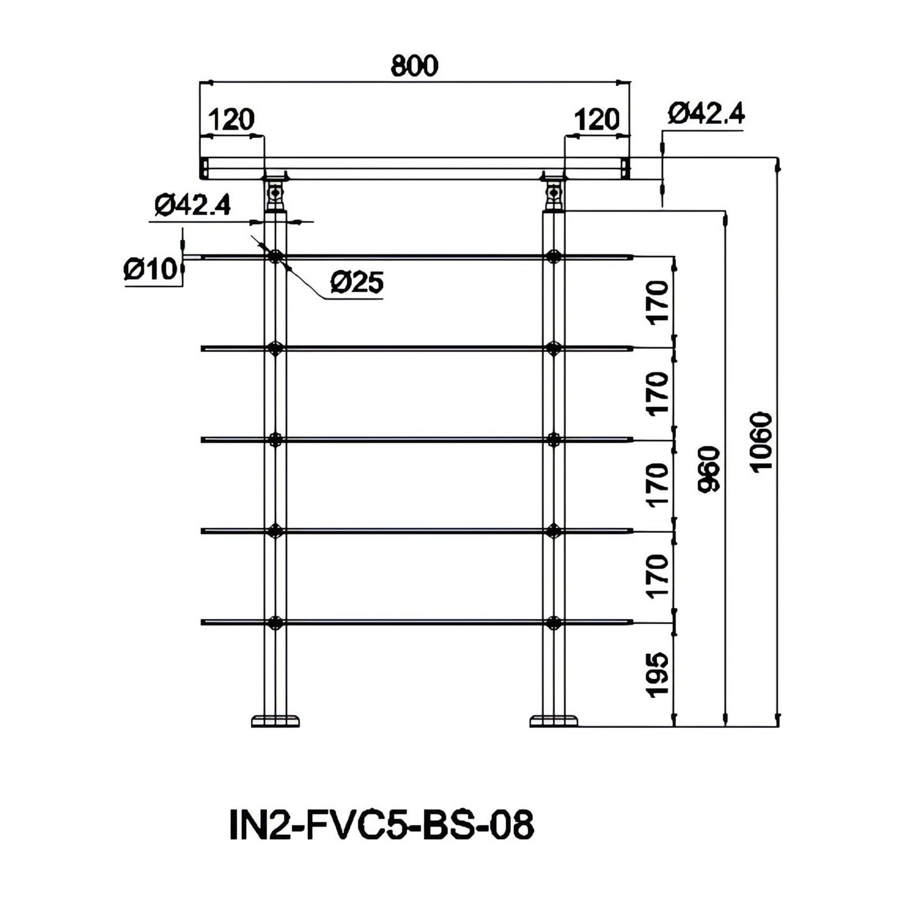 AICA Handlauf 80cm Geländer 5 Querstäbe Treppengeländer Balkongeländer Edelstahl