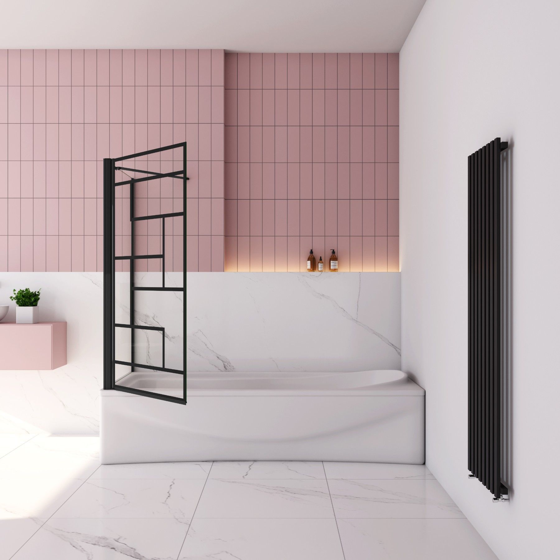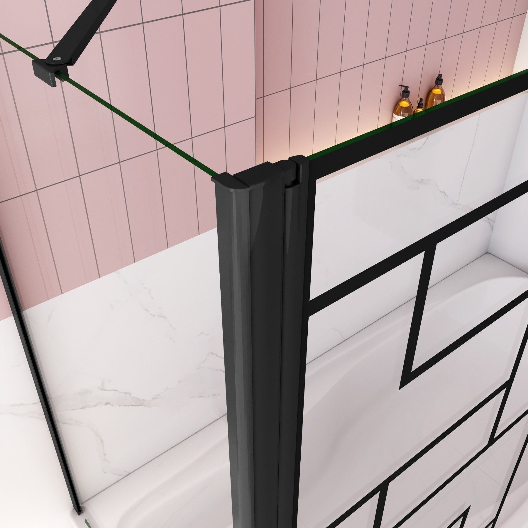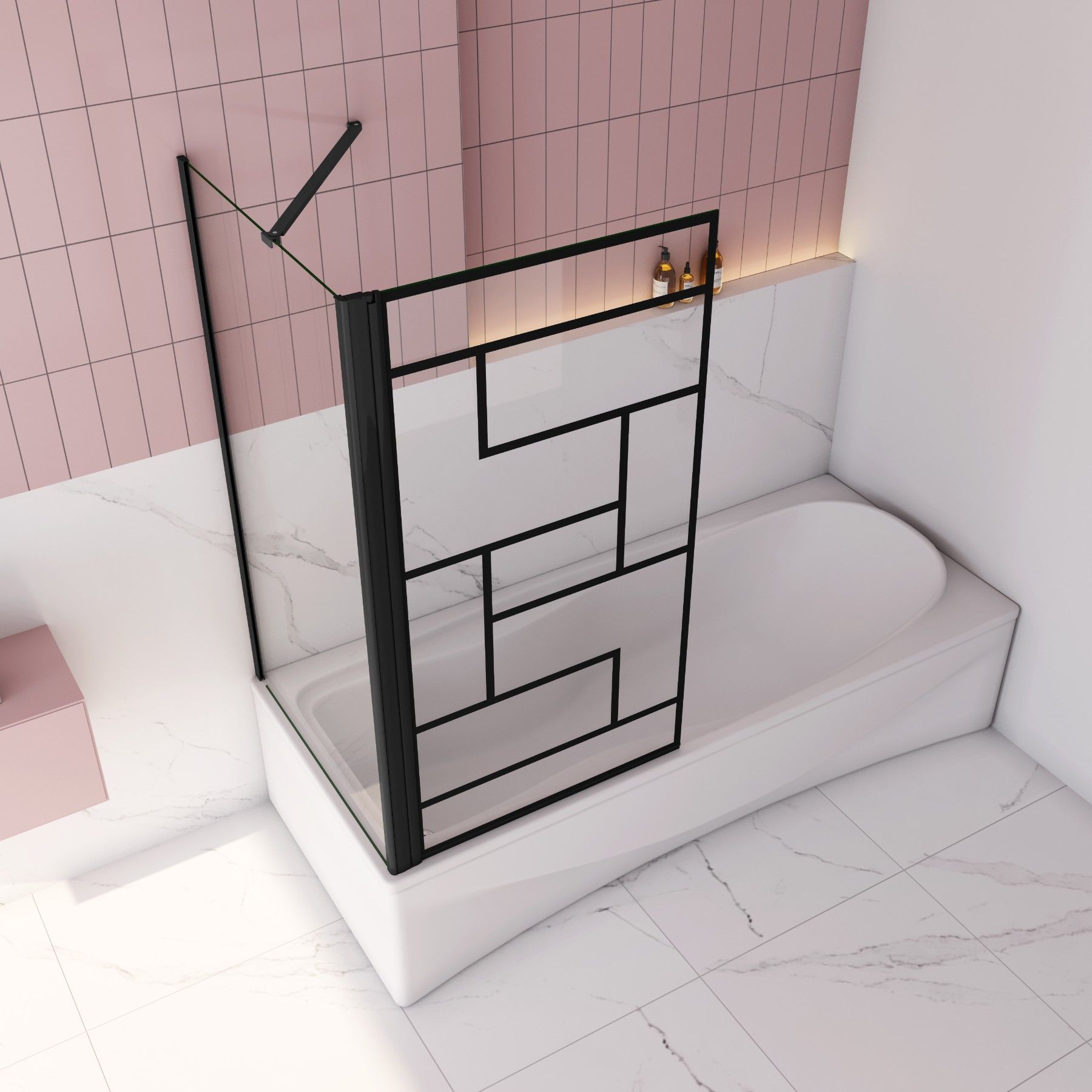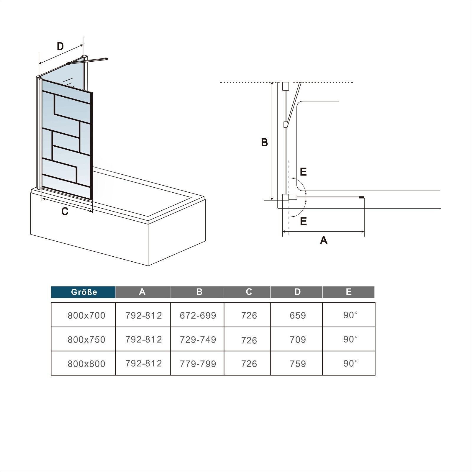 AICA Schwarz Siebdruck Badewanneaufsatz 80x140cm Faltbare mit 80cm Seitewand 6mm ESG