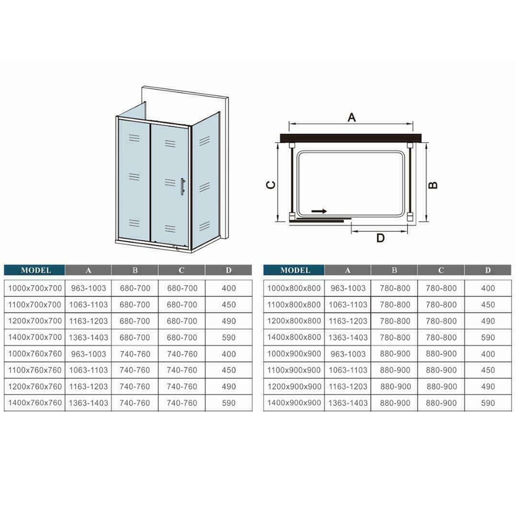 AICA U-FORM 140cm Schiebetür mit 2x80cm Seitenwand H.190cm Duschkabine